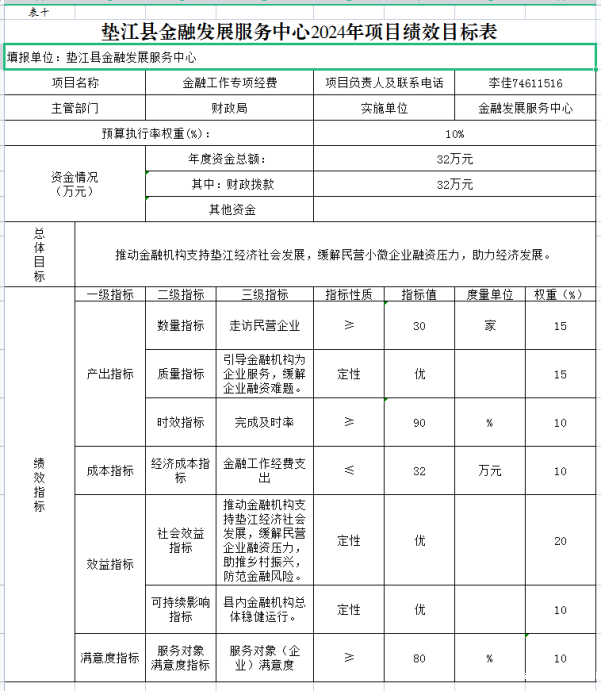 10.垫江县金融发展服务中心2024年项目绩效目标表