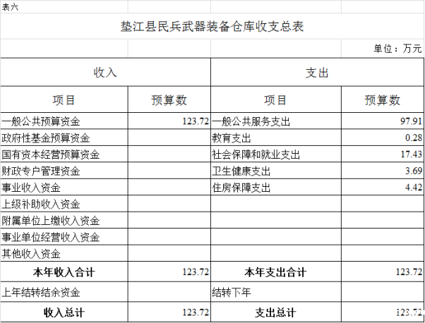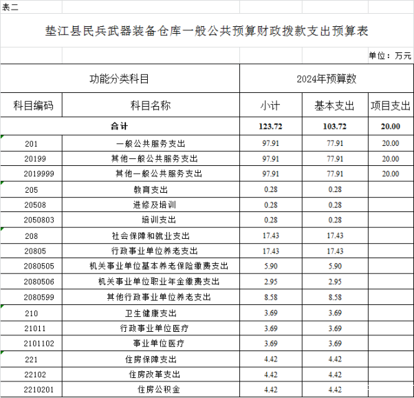 2. 垫江县民兵武器装备仓库一般公共预算财政拨款支出预算表