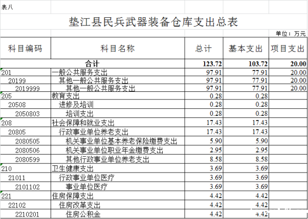 8. 垫江县民兵武器装备仓库支出总表