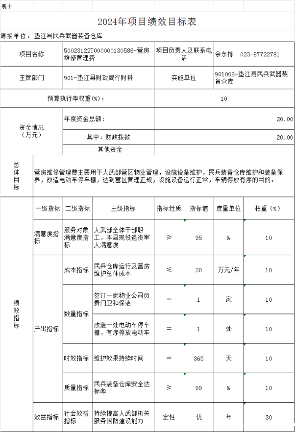 10. 垫江县民兵武器装备仓库2024年项目绩效目标表