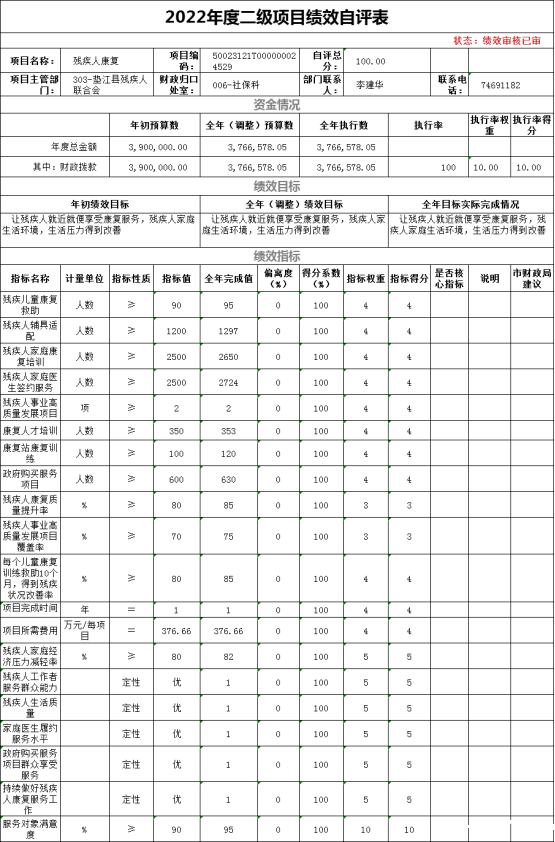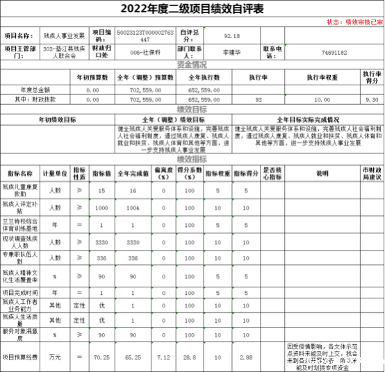 (二)绩效自评结果。