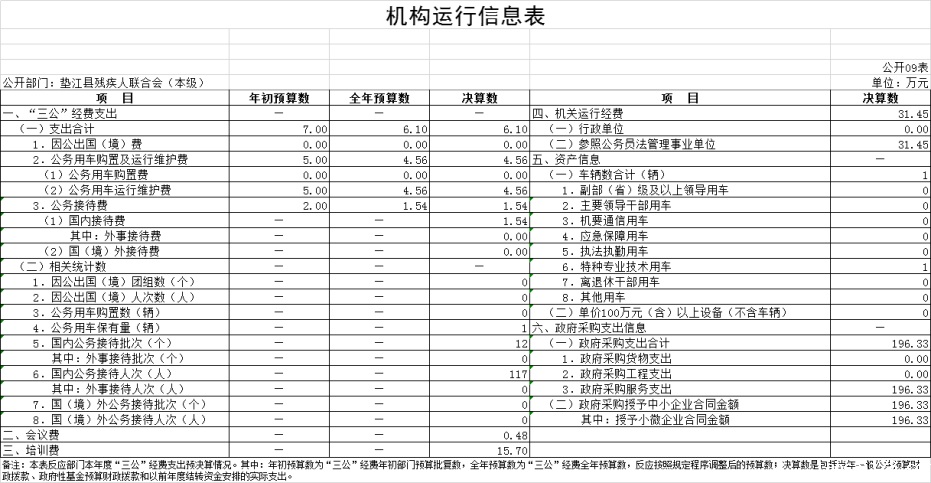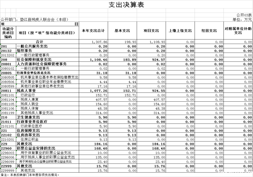 垫江县残疾人联合会(本级)2022年度部门决算情况说明