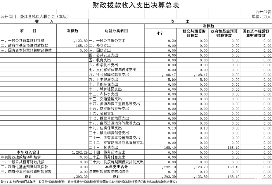 附表:1.收入支出决算总表