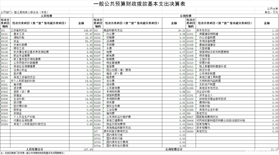 (九)基本支出:指为保障机构正常运转、完成日常工作任务而发生的人员经费和公用经费。其中:人员经费指政府收支分类经济科目中的“工资福利支出”和“对个人和家庭的补助”;公用经费指政府收支分类经济科目中除“工资福利支出”和“对个人和家庭的补助”外的其他支出。