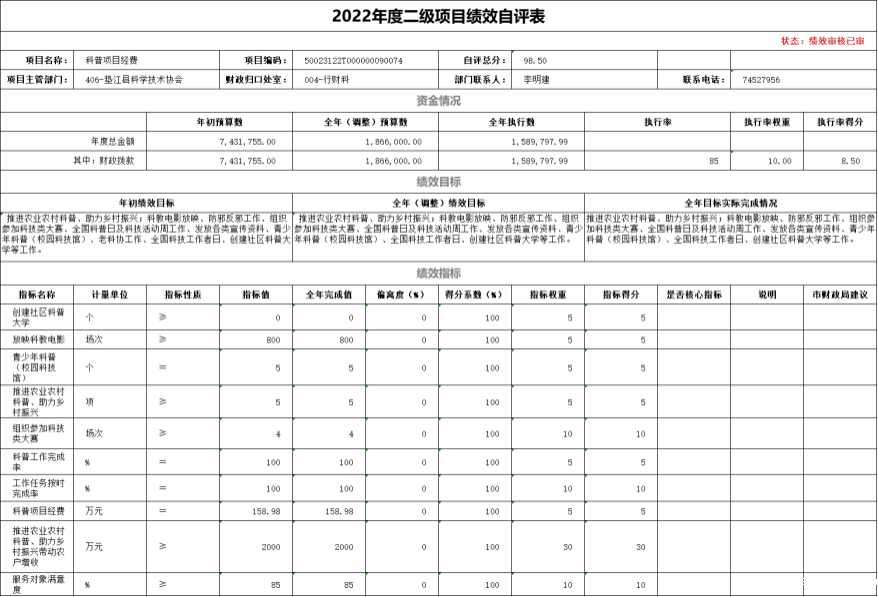 根据预算绩效管理要求,我部门整体对2个项目开展了绩效自评,其中,以填报自评表形式开展自评2项,涉及资金164.89万元;我单位坚持“统筹兼顾、收支平衡”的总原则,采取目标责任制的预算管理方式,指定专人负责,确保资金申报、审核、审批、拨付环节有人签。严格按流程审批,实施单位专款专用,不存在截留、挤占、挪用。委托第三方出具报告的方式开展绩效评价0项,涉及资金0万元。