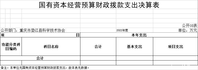 2022年度国有资本经营预算财政拨本年支出0万元,基本支出0万元,项目支出0万元,本单位2022年度无国有资本经营预算财政拨款支出。