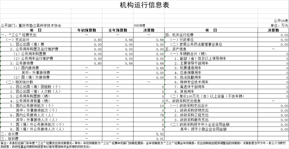 2022年度“三公”经费支出共计0.66万元,较年初预算数减少0.14万元,下降17.5%,主要原因是认真贯彻落实中央八项规定精神和厉行节约要求。强化公务接待支出管理,严格遵守公务接待开支范围和开支标准,严格控制陪餐人数,对应由接待对象承担的费用一律由接待对象自行支付。较上年支出数增加0.36万元,增长120.0%,主要原因是用于市科协领导莅临垫江调研、梁平区科协赴垫调研、重庆大学教授到垫江开展科技教育乡村行活动等接待费。