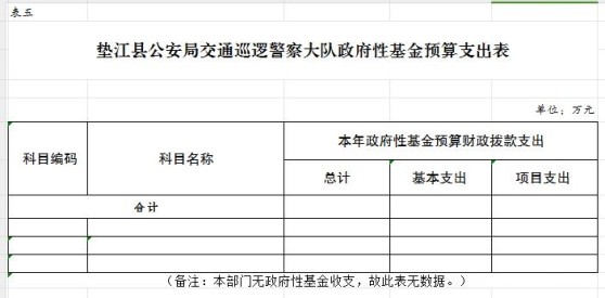 5. 垫江县公安局交通巡逻警察大队政府性基金预算支出表