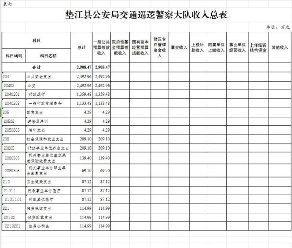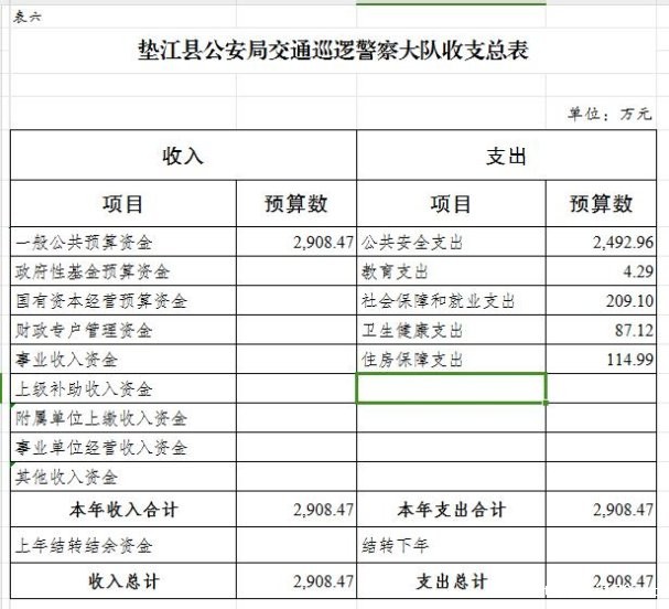 6. 垫江县公安局交通巡逻警察大队收支总表