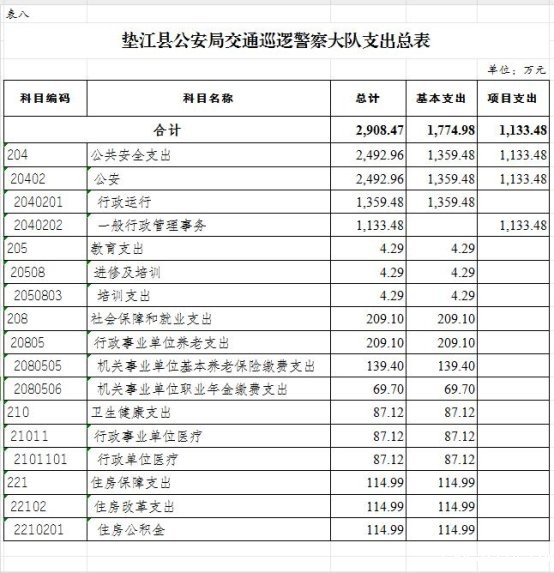 8. 垫江县公安局交通巡逻警察大队支出总表