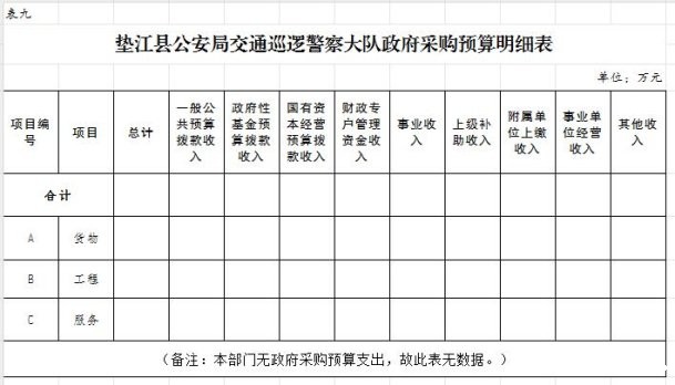 9. 垫江县公安局交通巡逻警察大队政府采购明细表