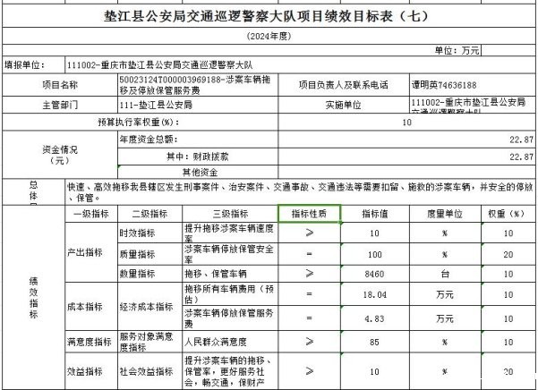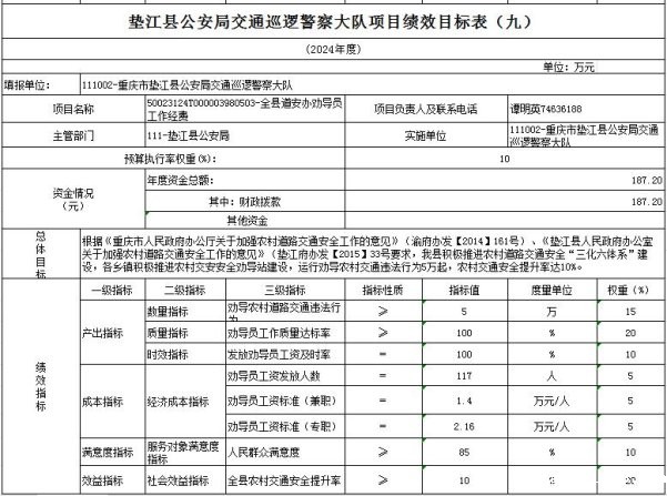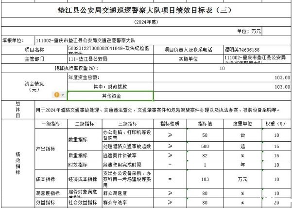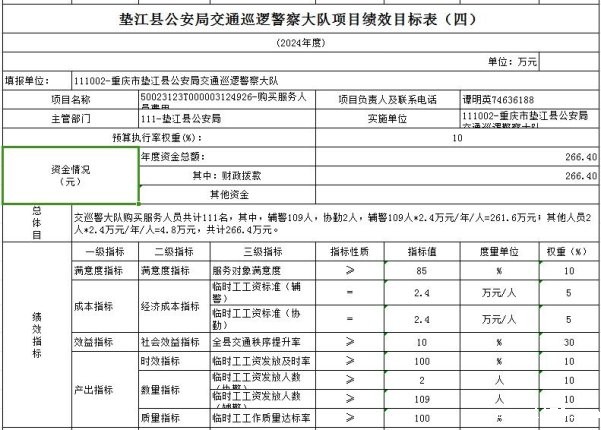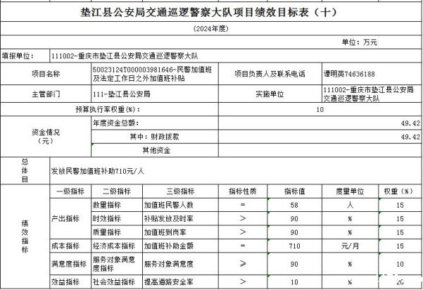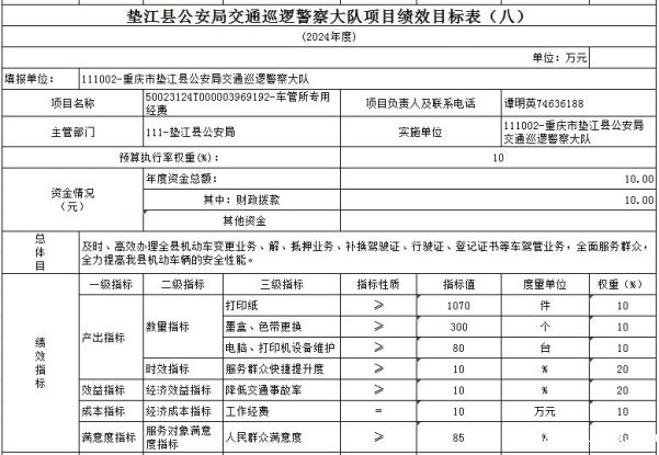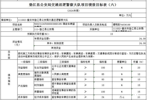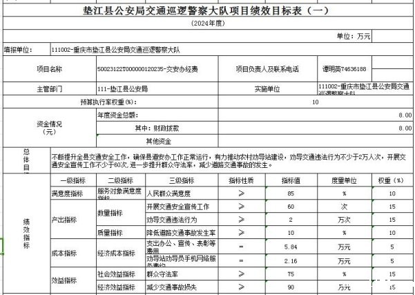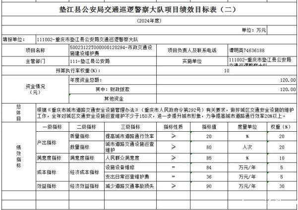 10. 垫江县公安局交通巡逻警察大队2024年项目绩效目标表