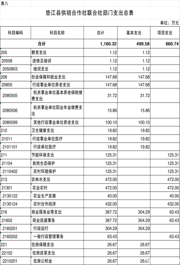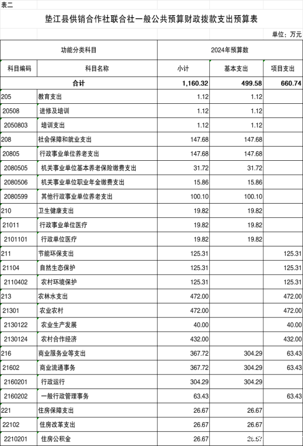 2.垫江县供销合作社联合社一般公共预算财政拨款支出预算表