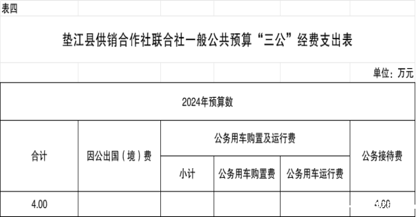 4.垫江县供销合作社联合社一般公共预算“三公”经费支出表