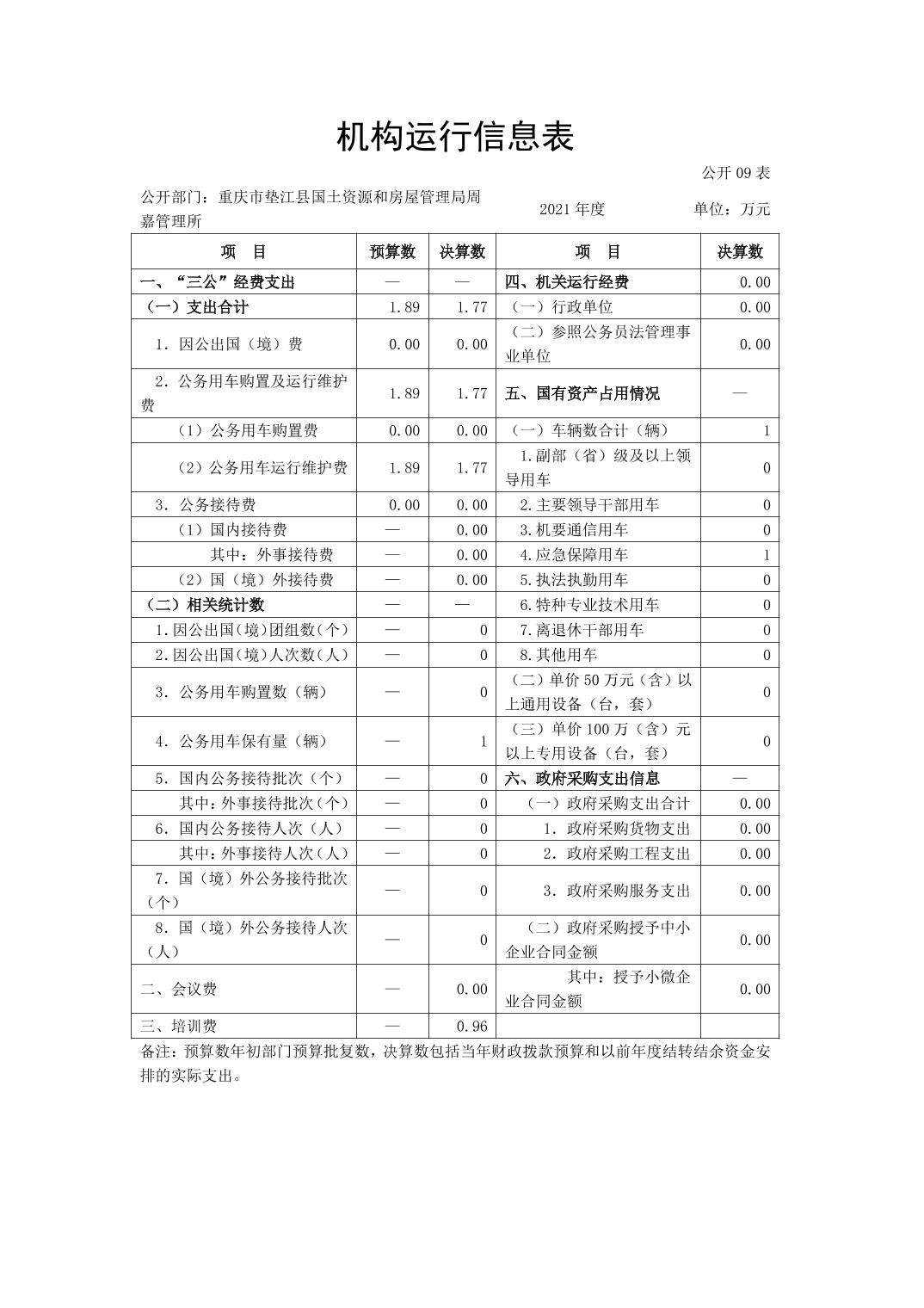 重庆市垫江县国土资源和房屋管理局周嘉管理所2021年决算公开说明