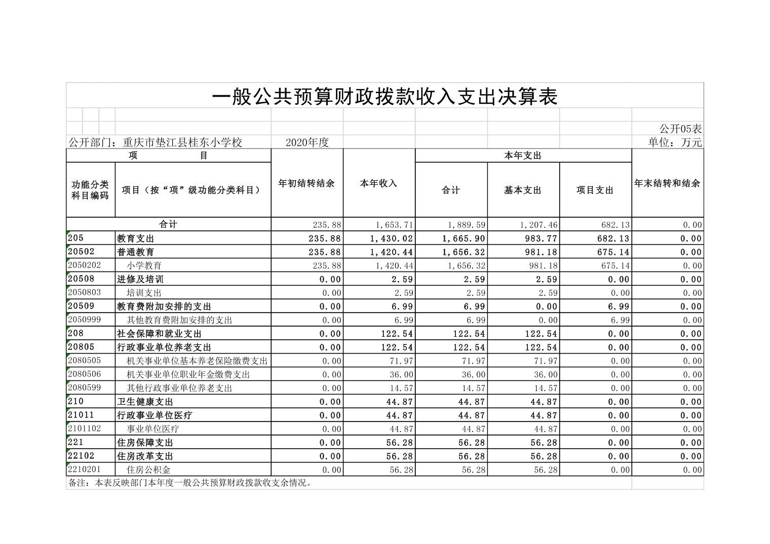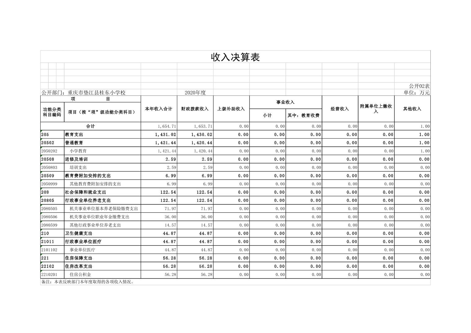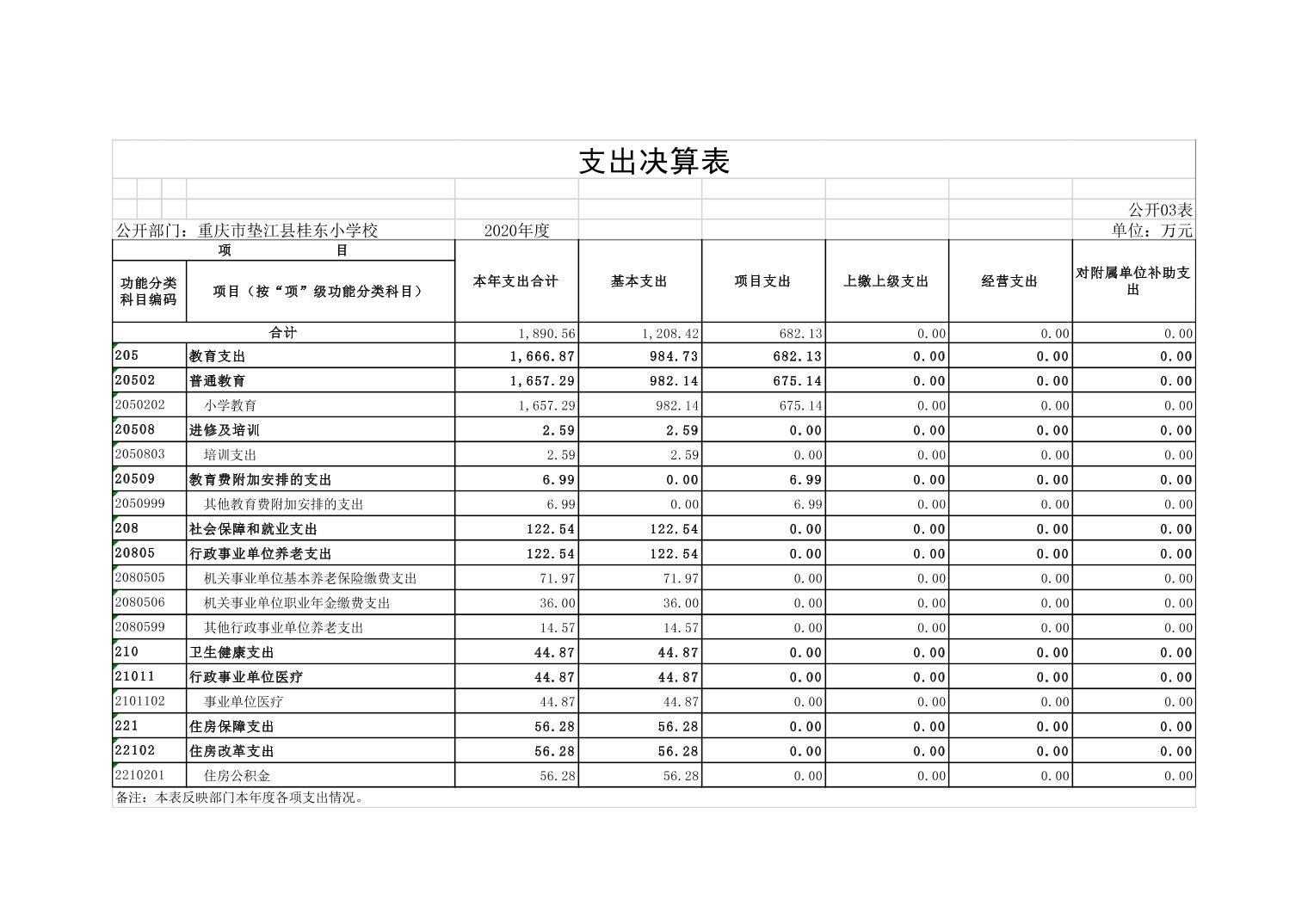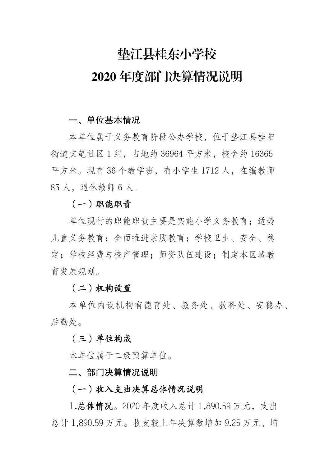 垫江县桂东小学校2020年决算公开