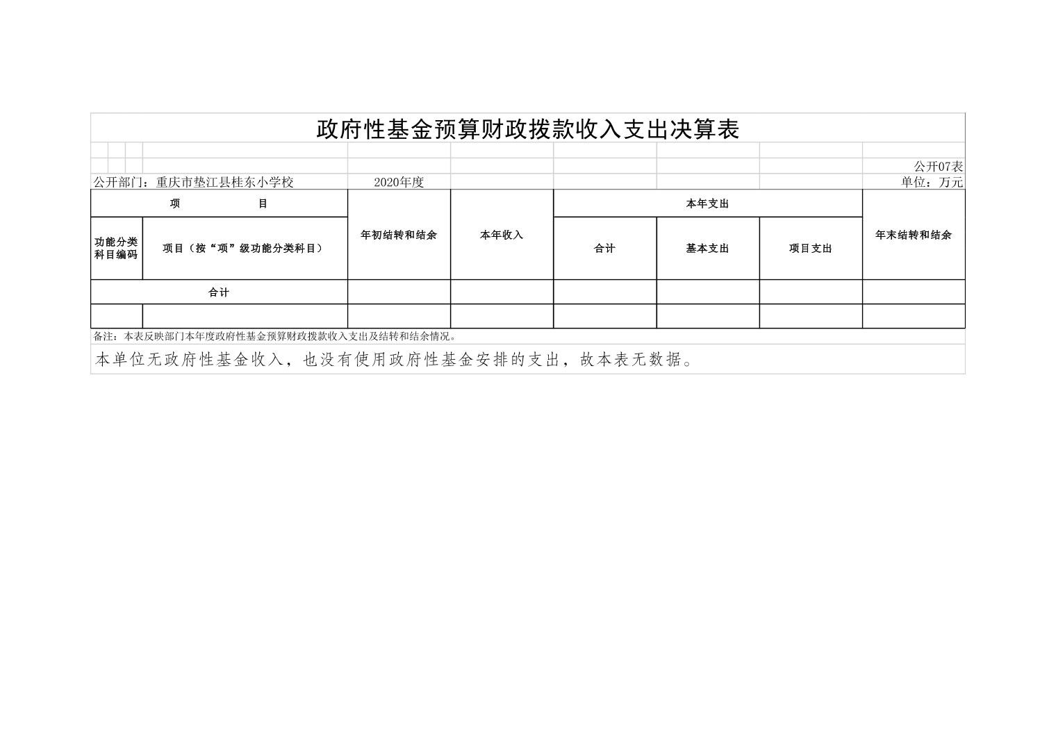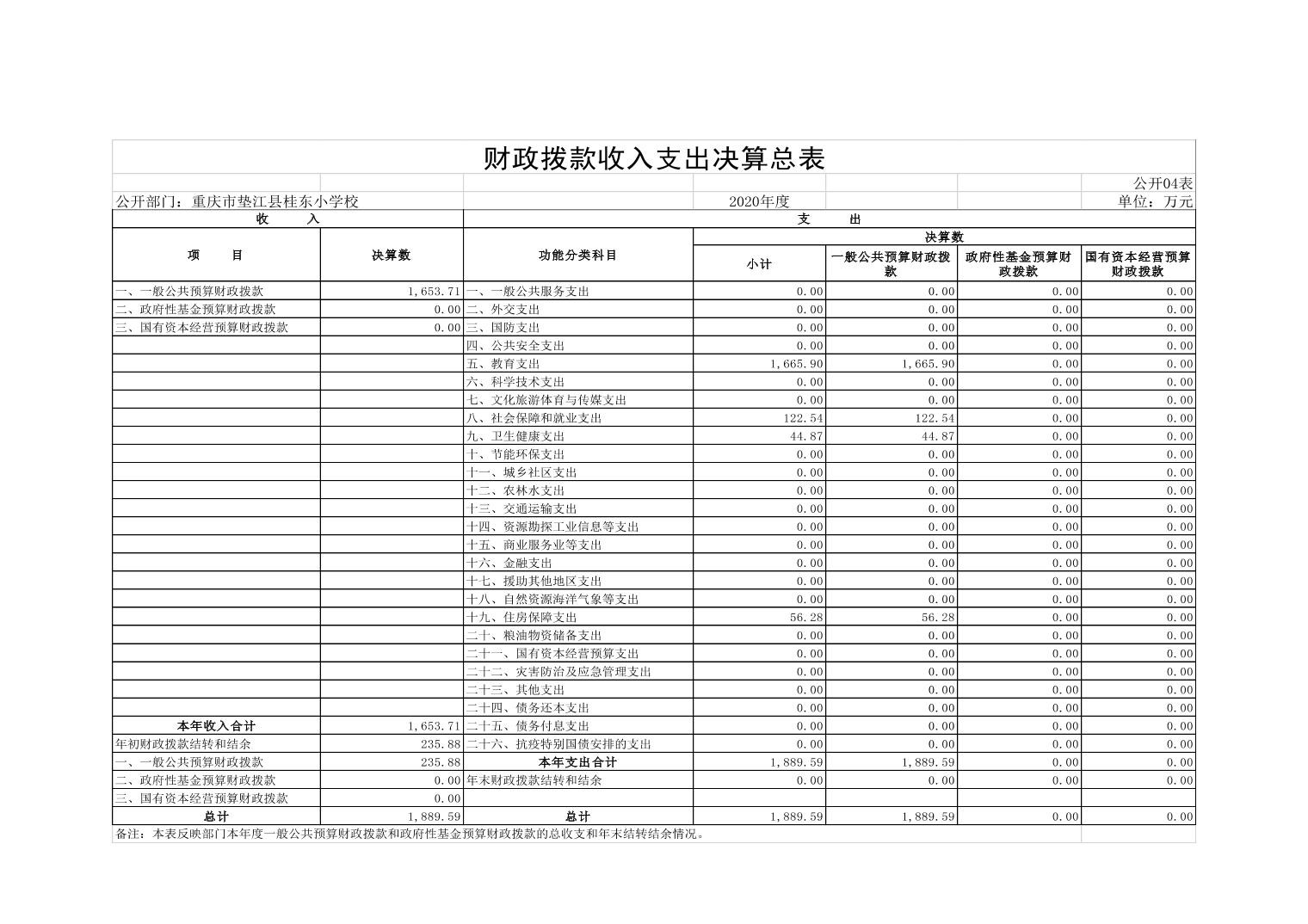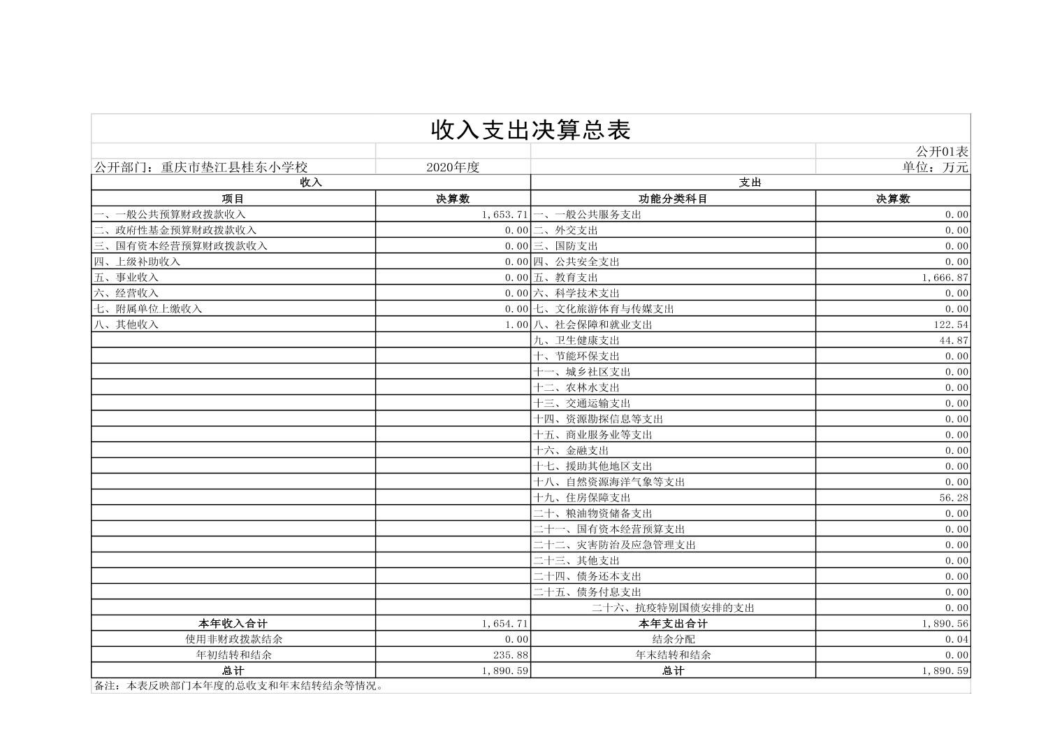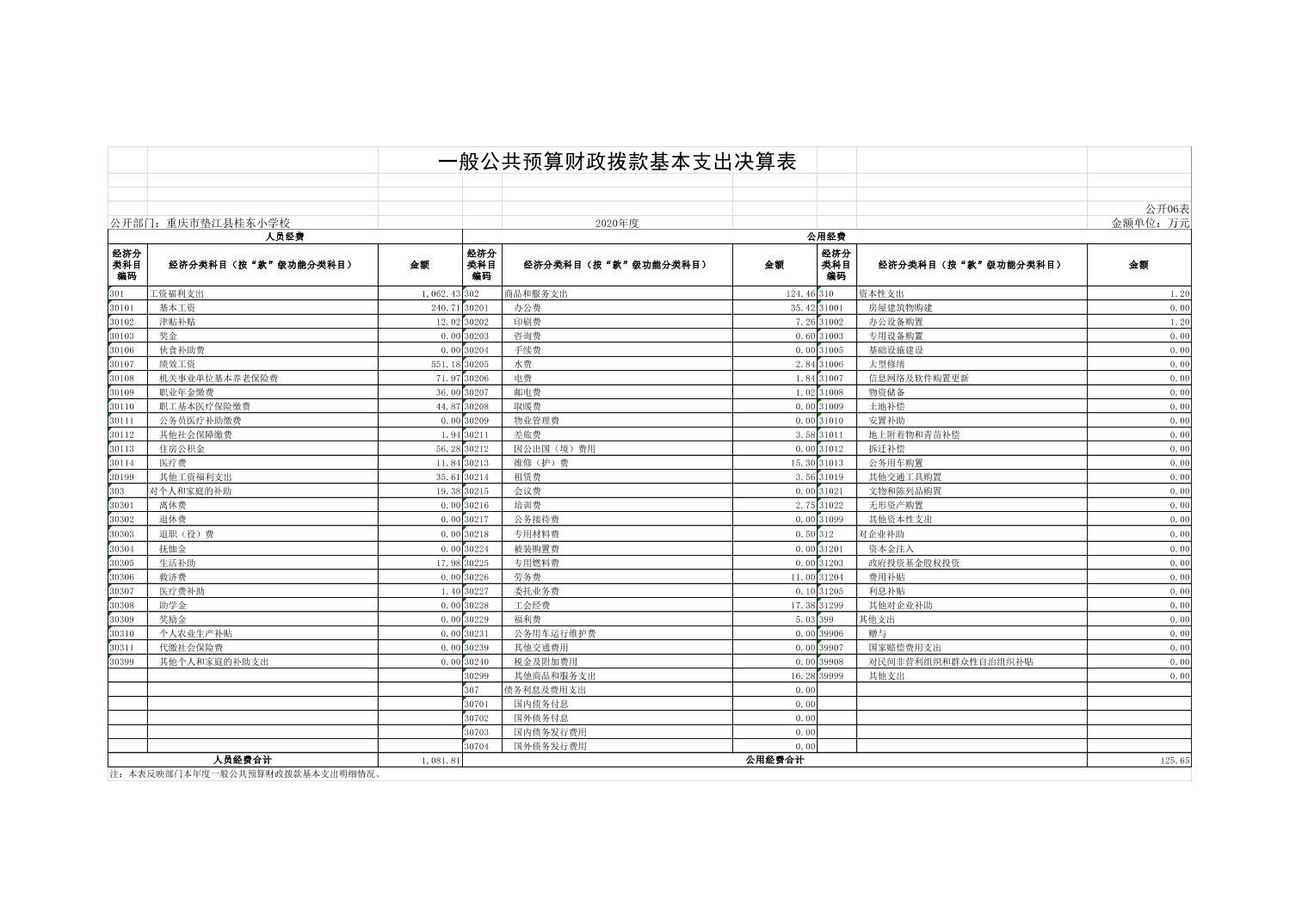 垫江县桂东小学校2020年决算公开