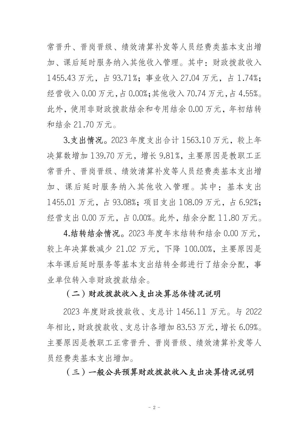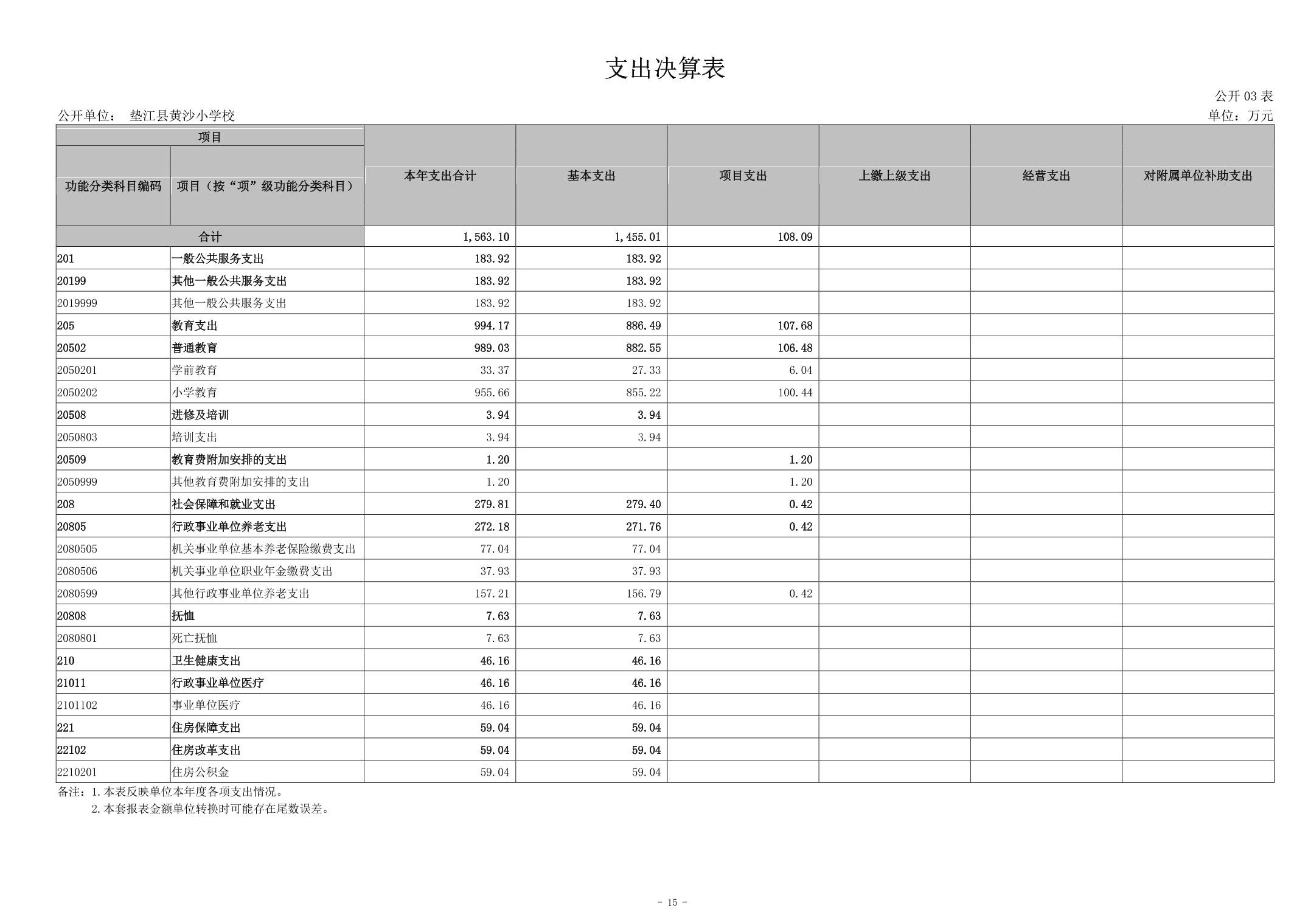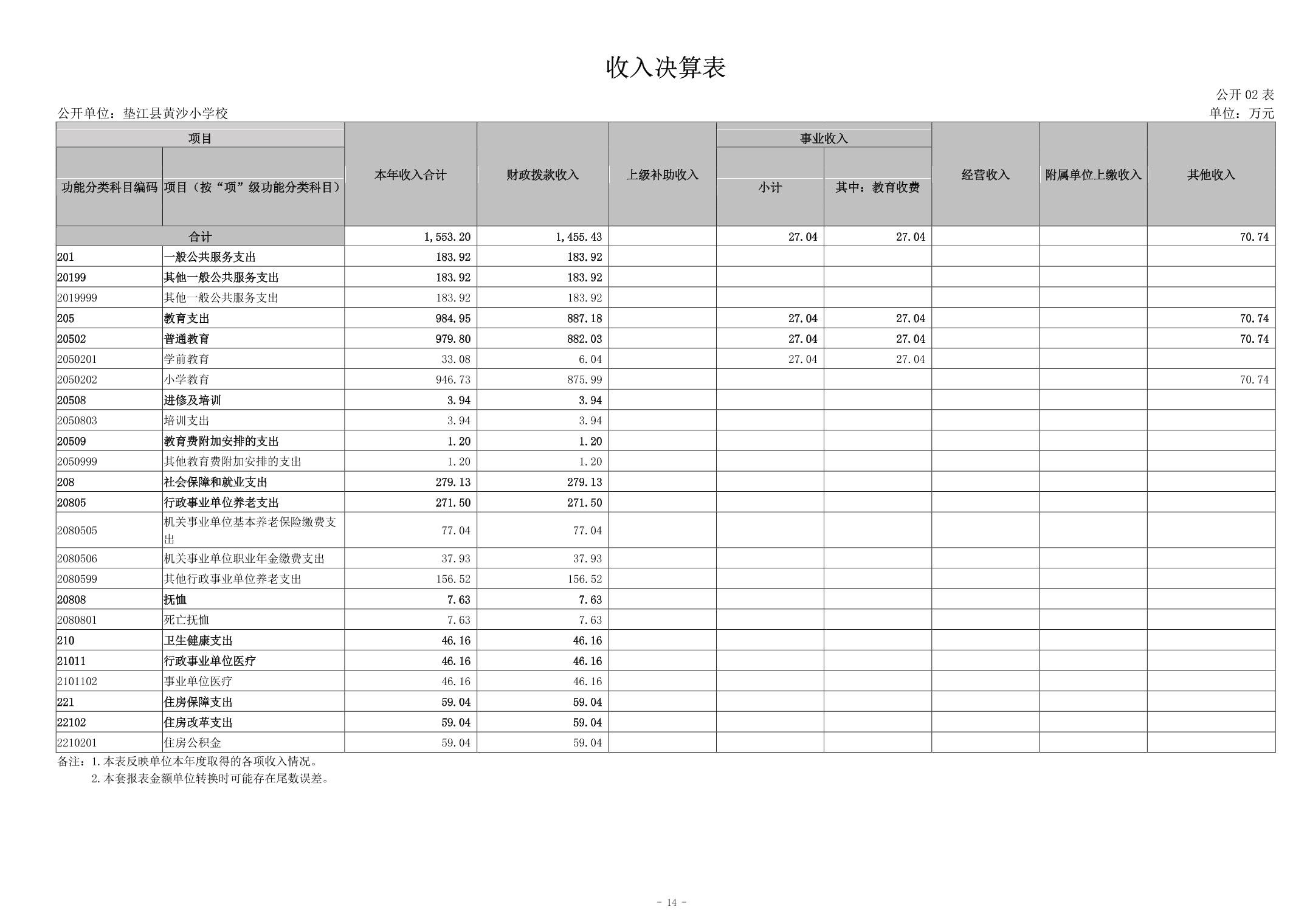 垫江县黄沙小学校2023年决算公开