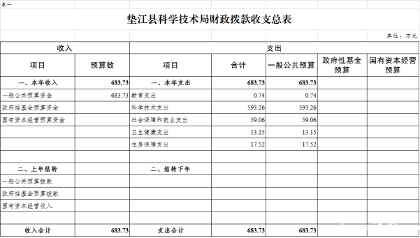附表:1.垫江县科学技术局(本级)财政拨款收支总表