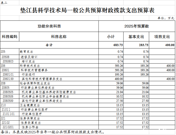 垫江县科学技术局(本级)2025年单位预算情况说明