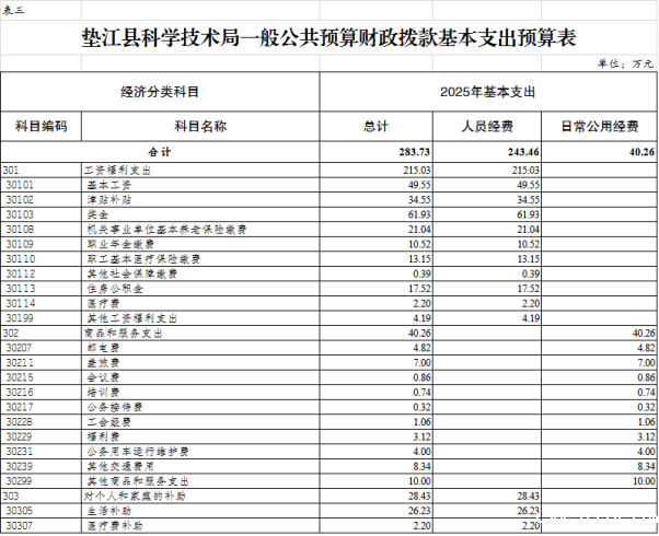 3. 垫江县科学技术局(本级)一般公共预算财政拨款基本支出预算表