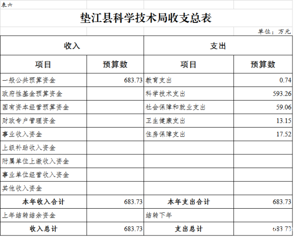 6. 垫江县科学技术局(本级)收支总表