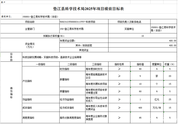 10. 垫江县科学技术局(本级)2025年项目绩效目标表