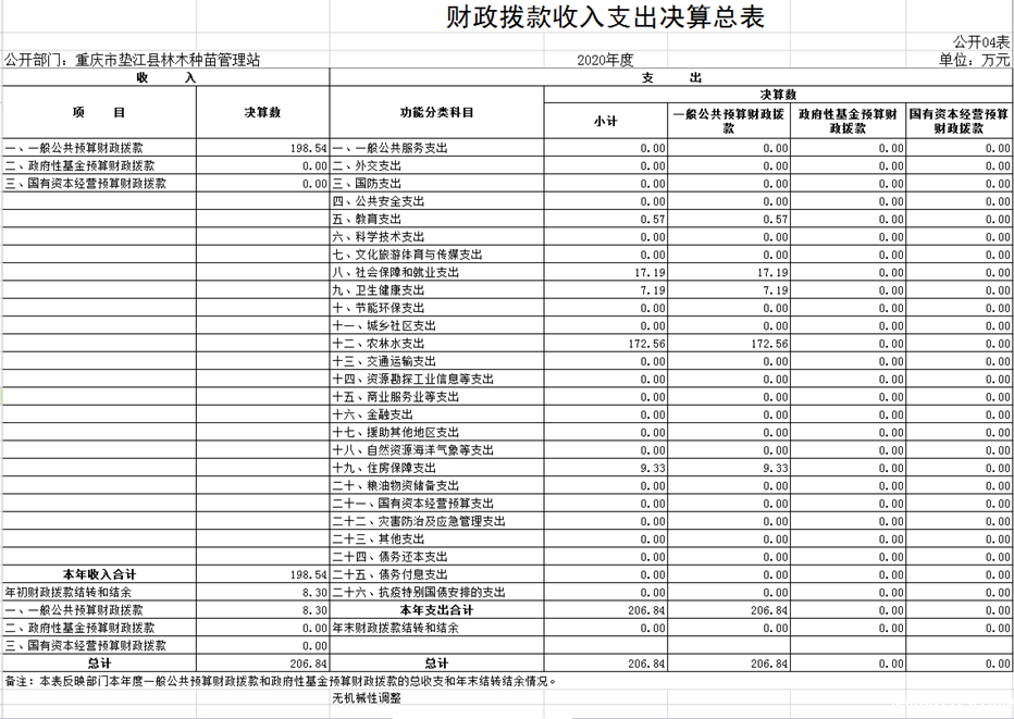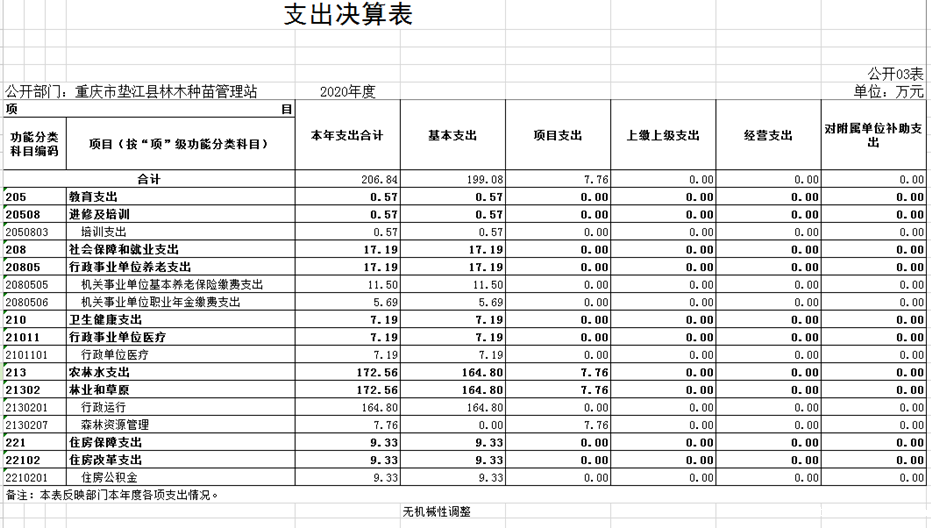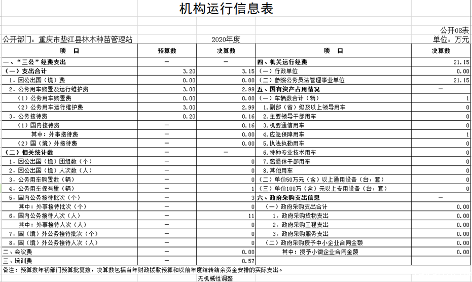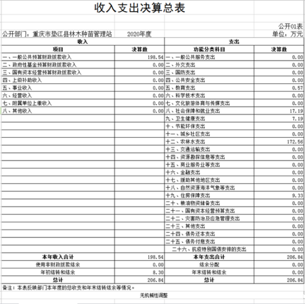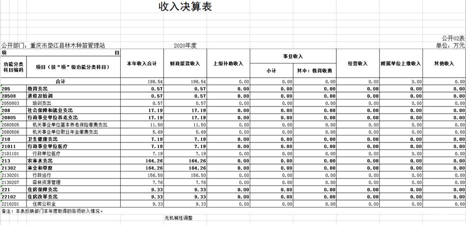 重庆市垫江县林木种苗管理站2020年度部门决算情况说明