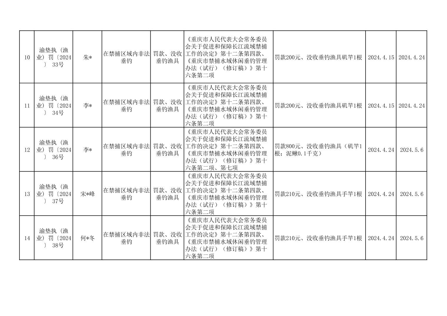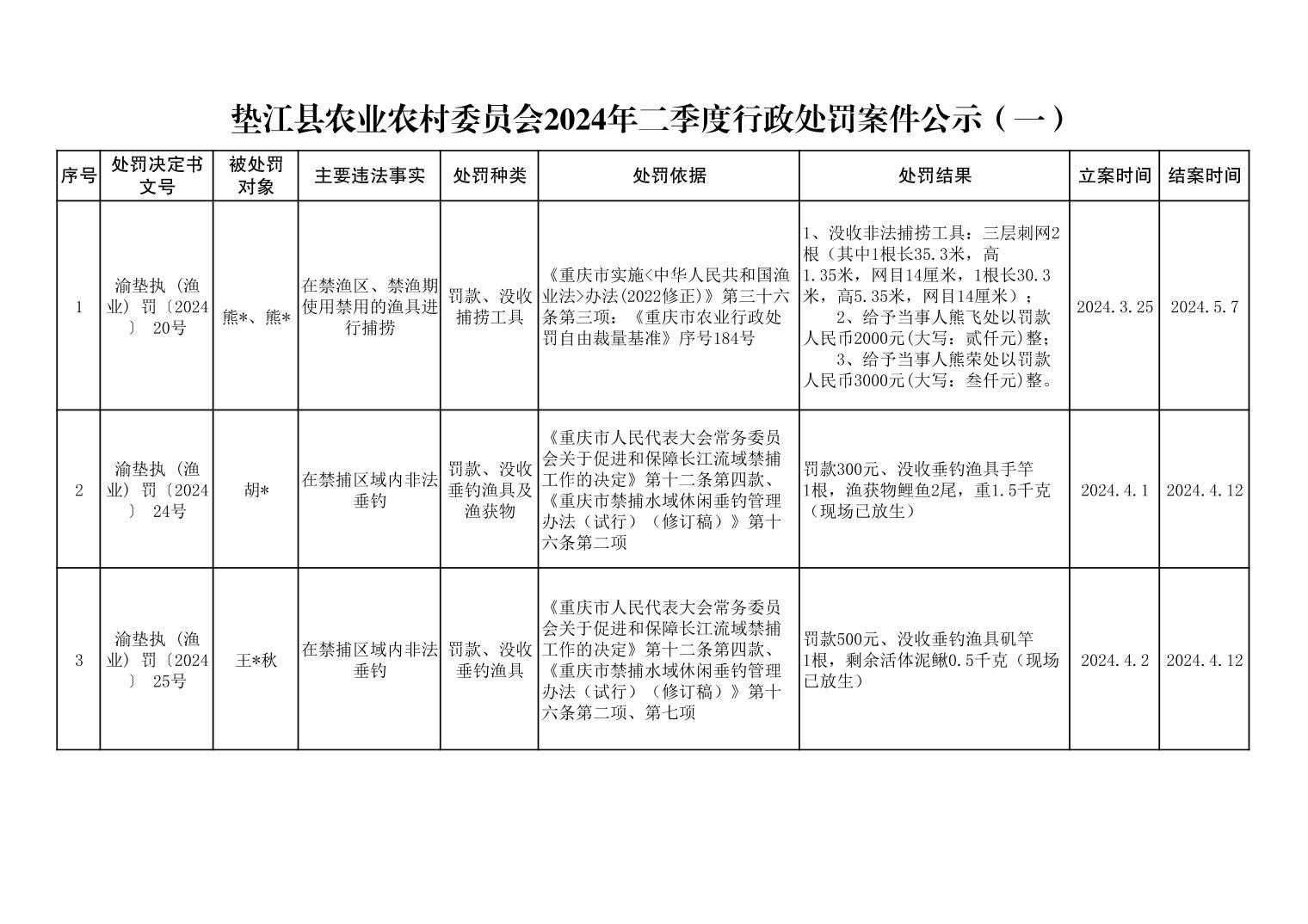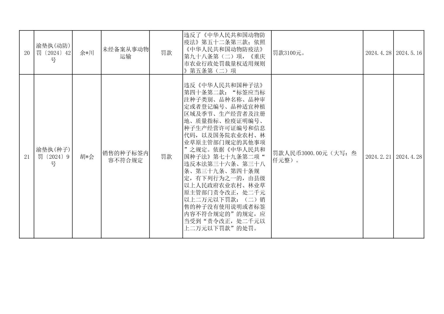 垫江县农业农村委员会2024年二季度行政处罚案件公示(一)