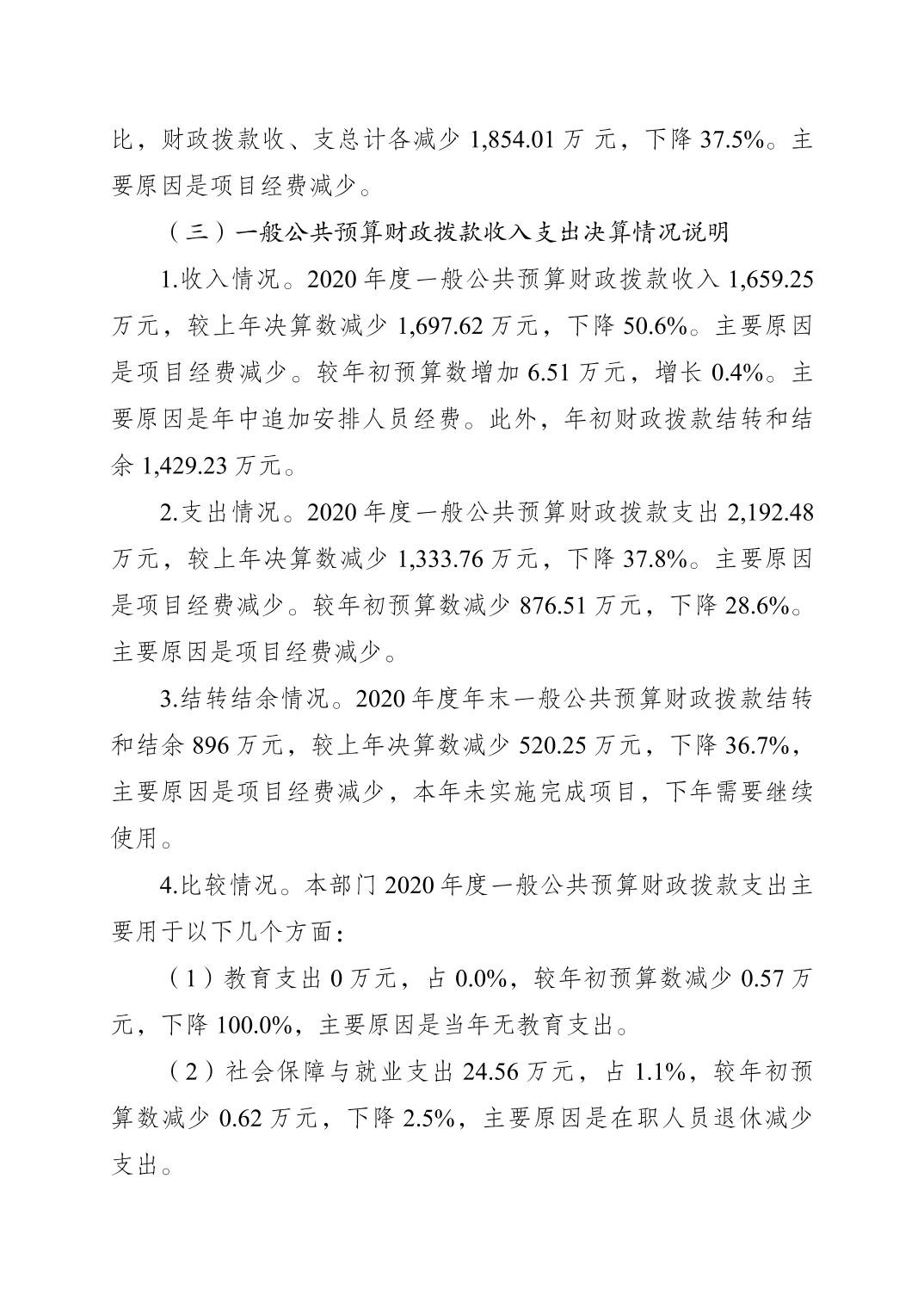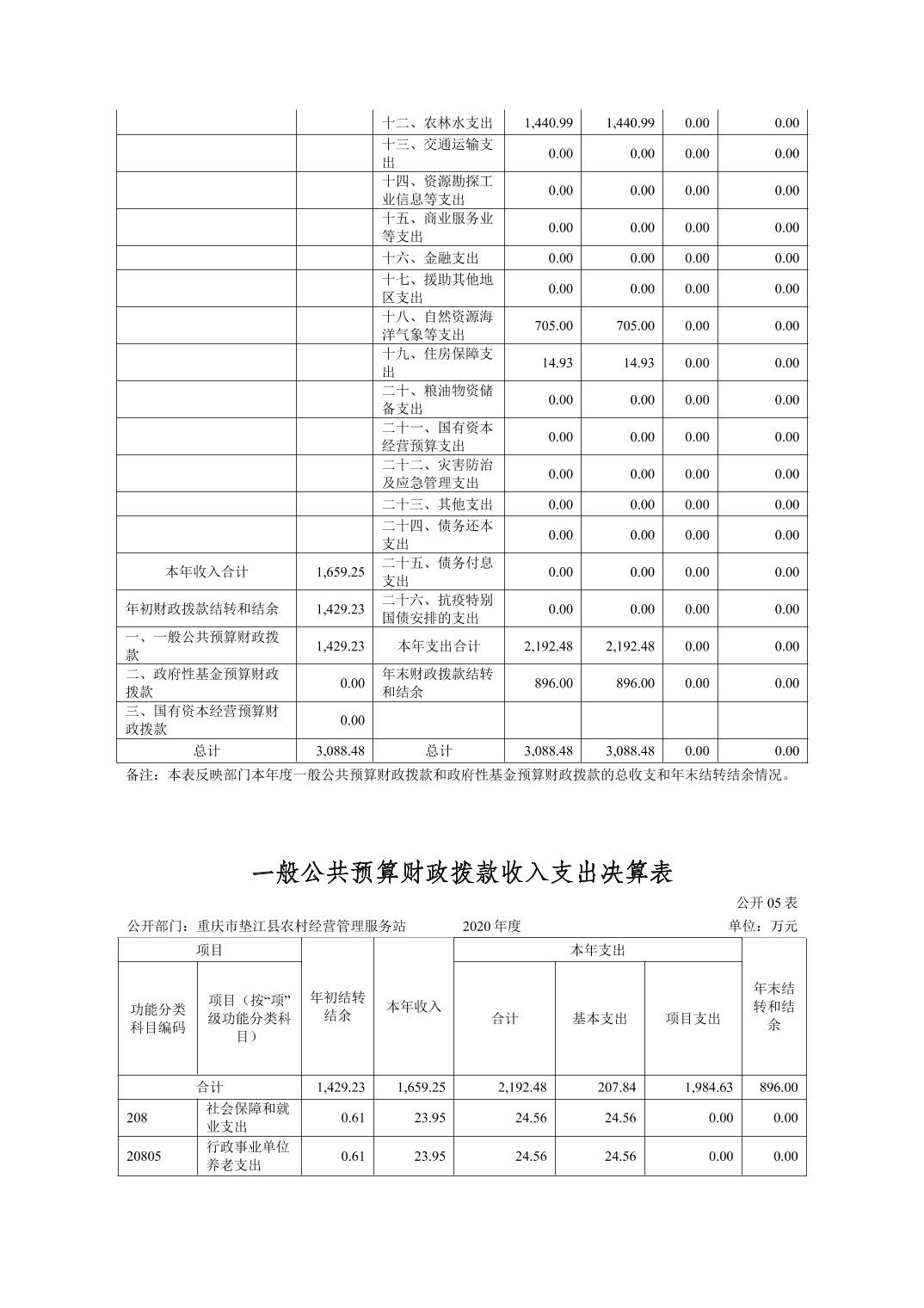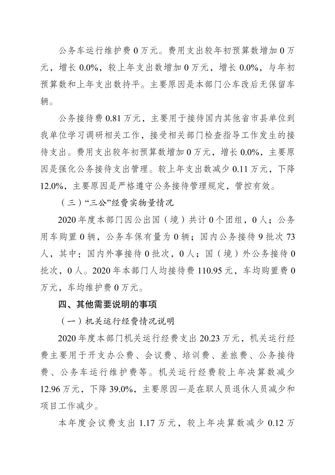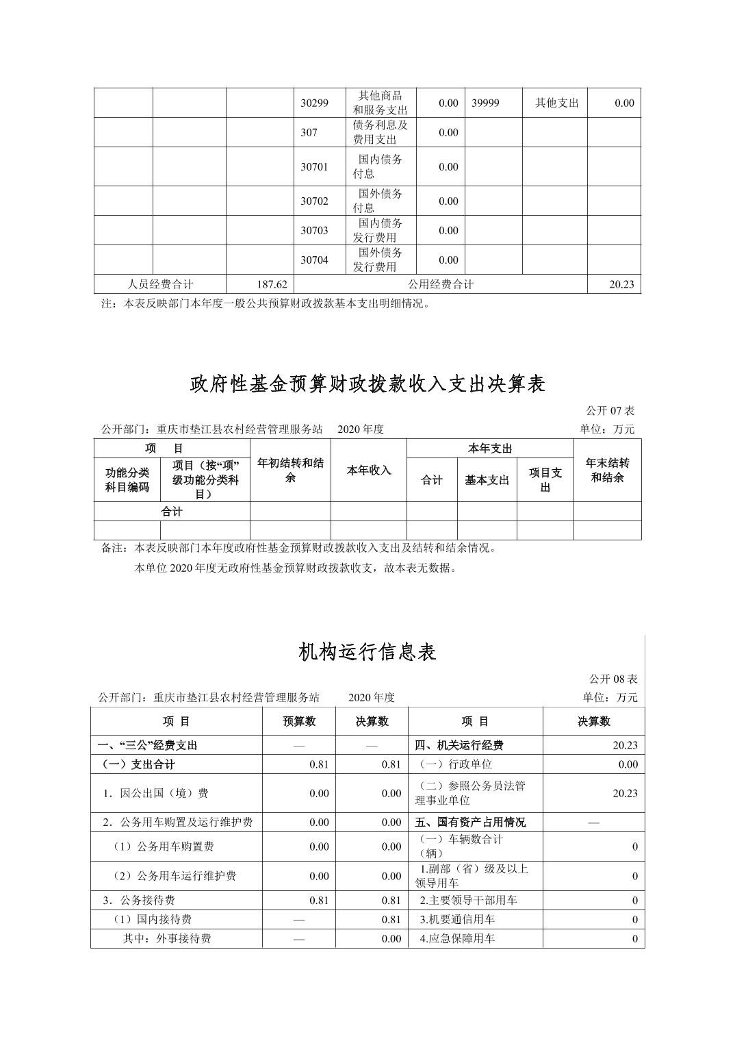 重庆市垫江县农村经营管理服务站2020年度部门决算情况说明