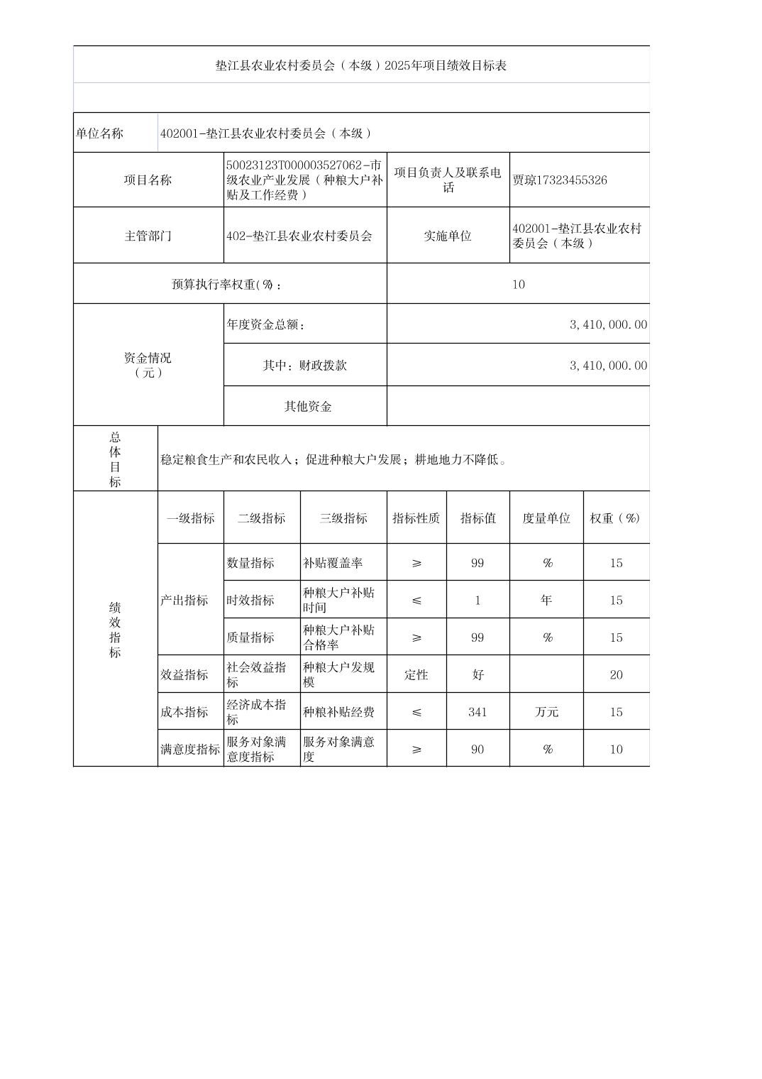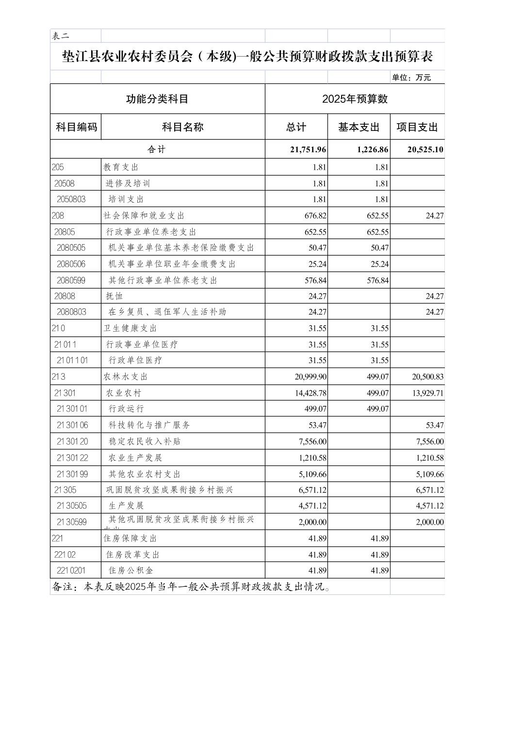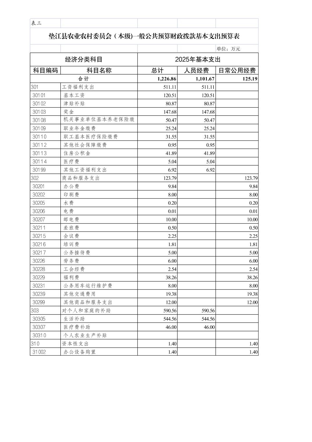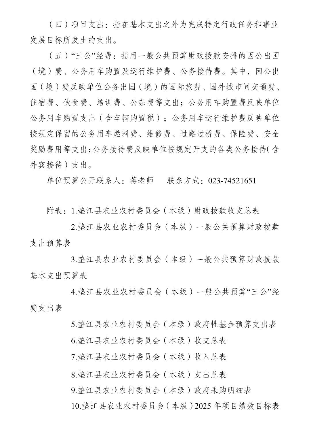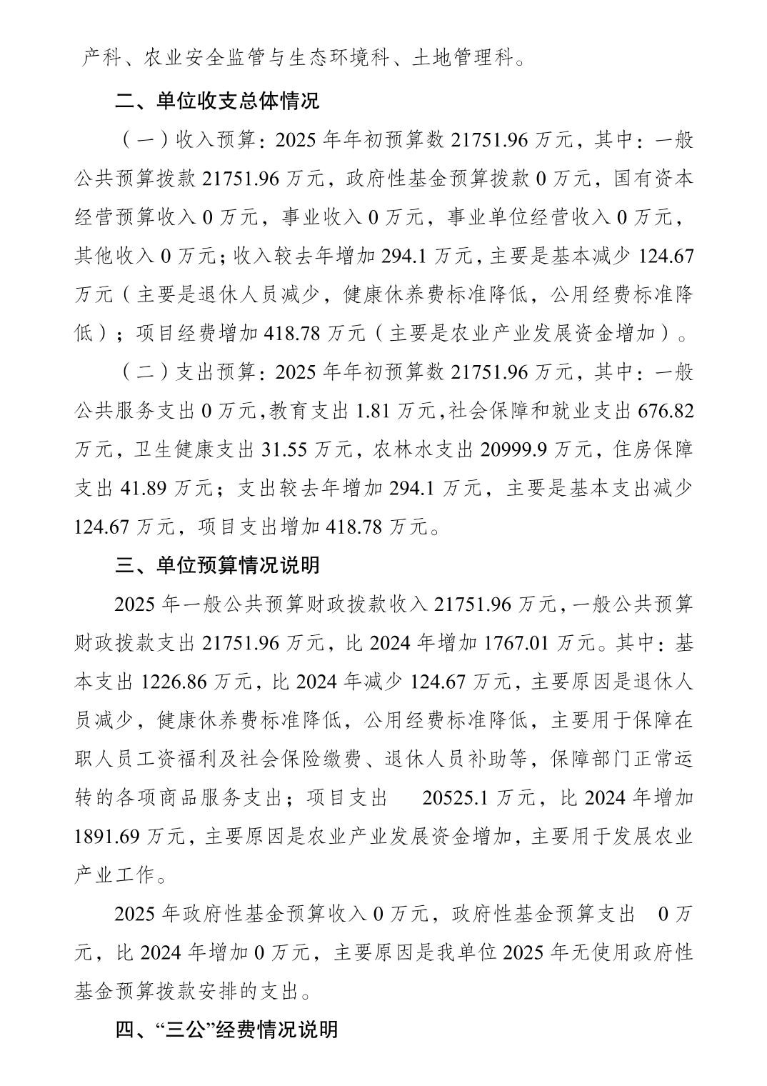 垫江县农业农村委员会(本级)2025年单位预算情况说明