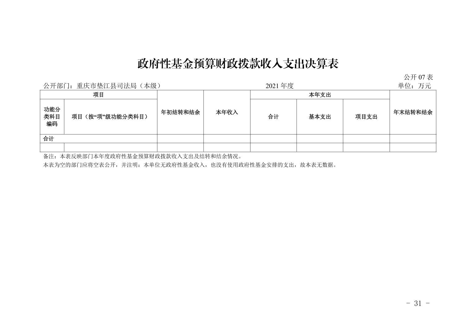重庆市垫江县司法局(本级)2021年度部门决算补充公开的情况说明