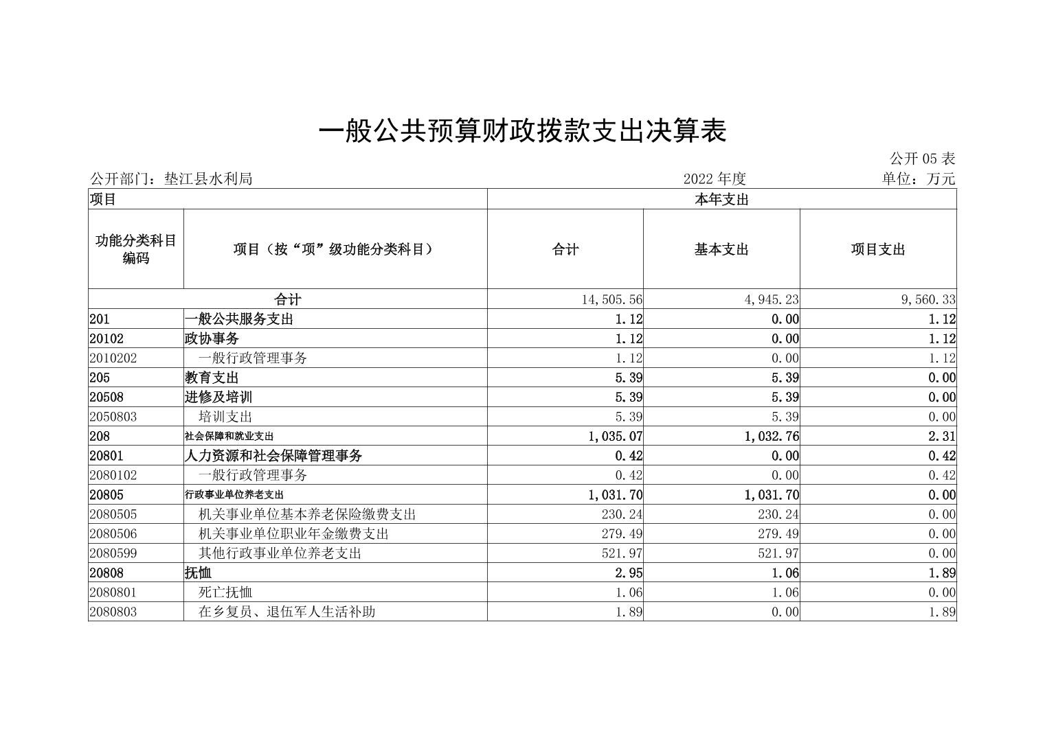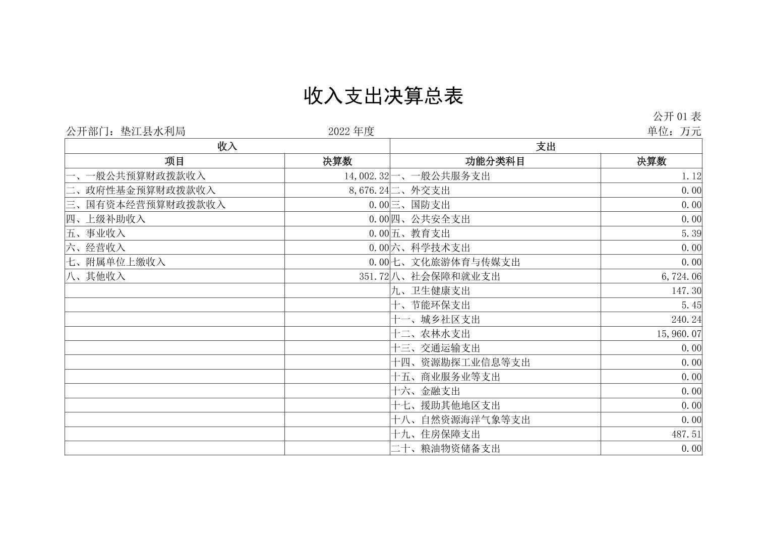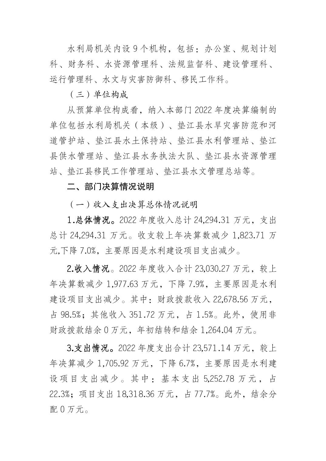 垫江县水利局2022年度部门决算情况说明