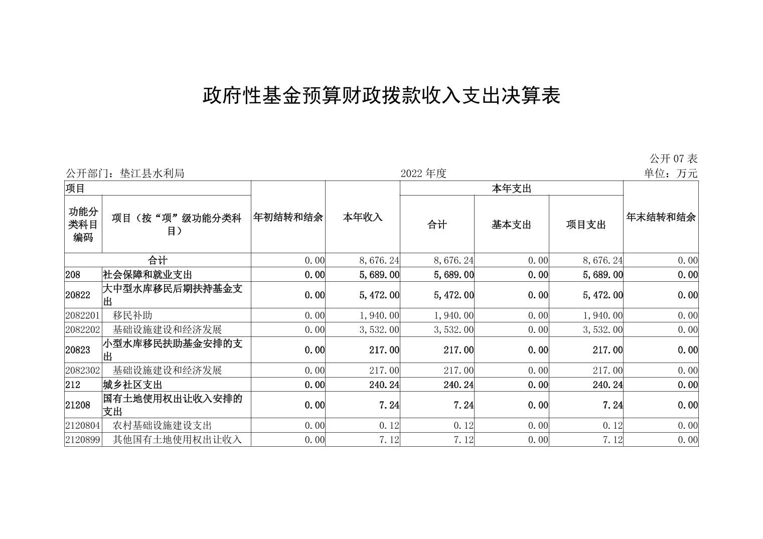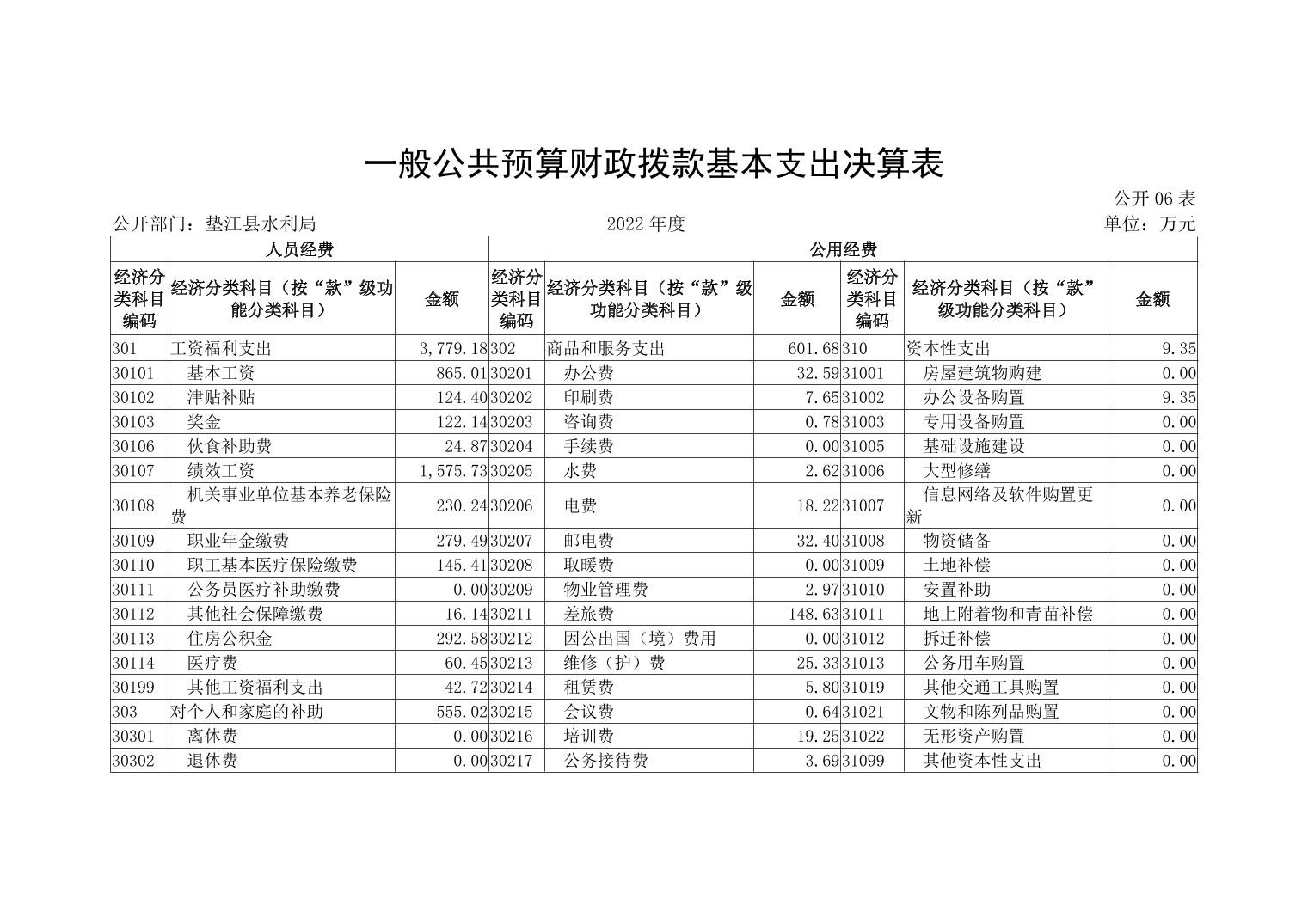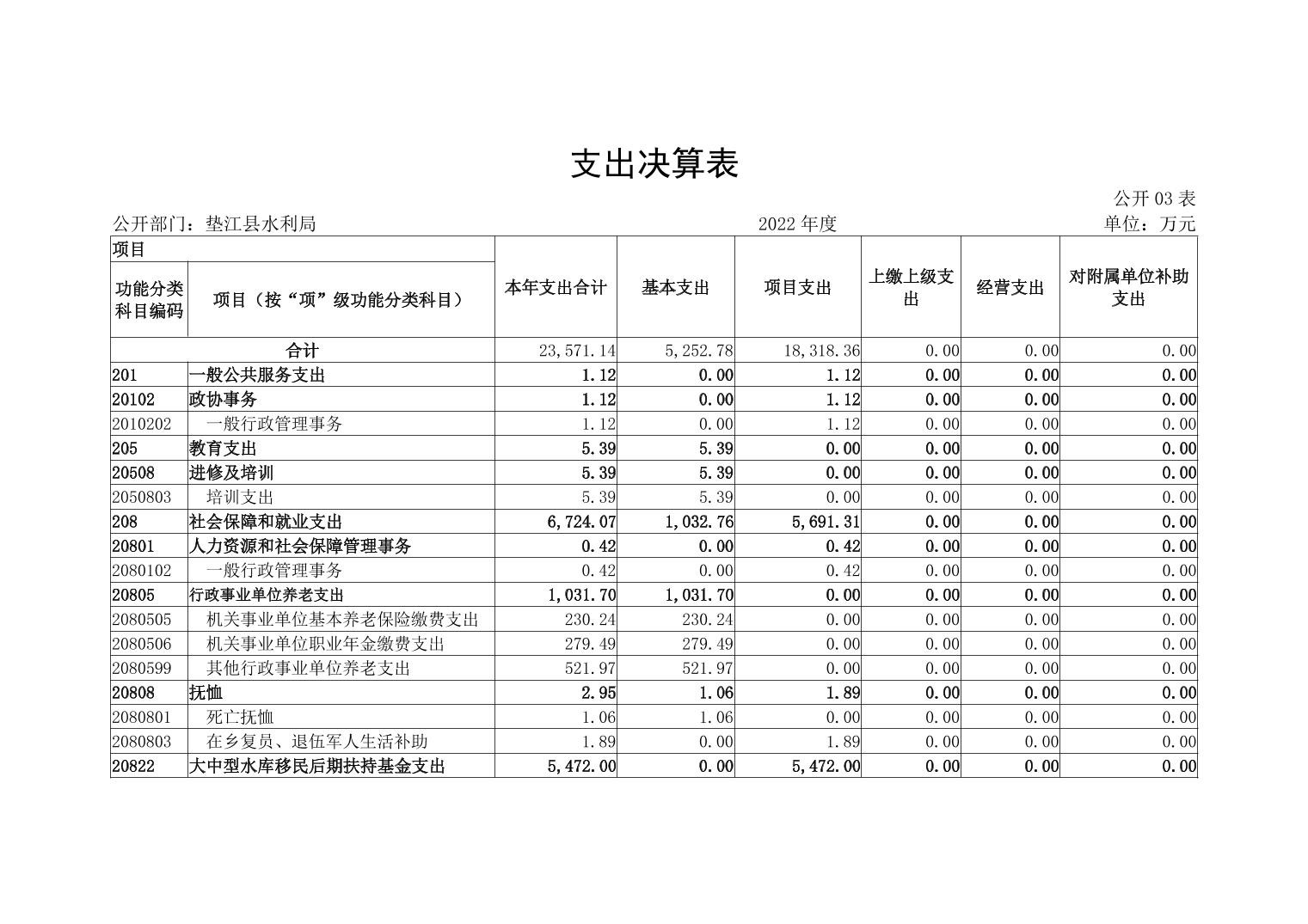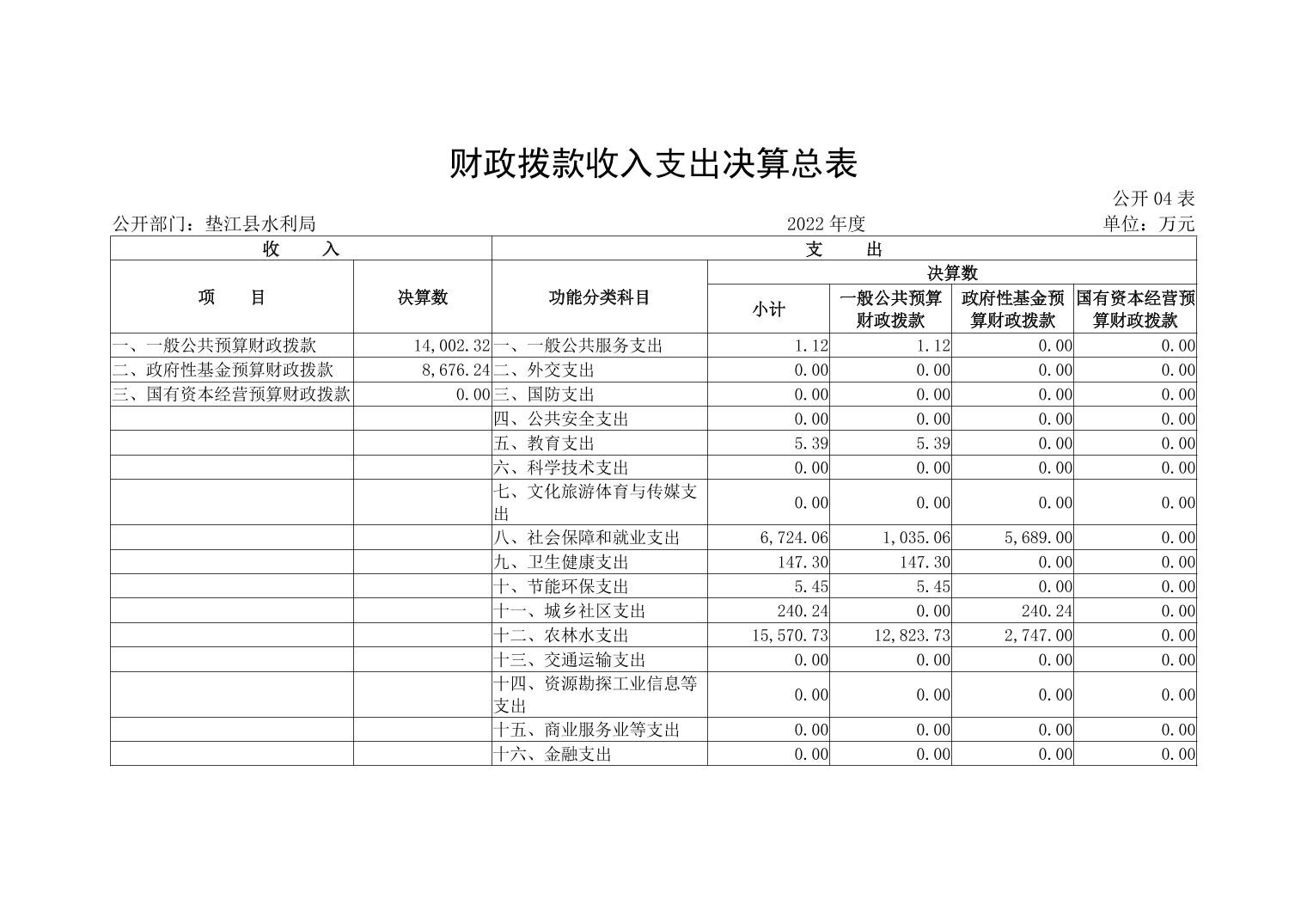 垫江县水利局2022年度部门决算情况说明