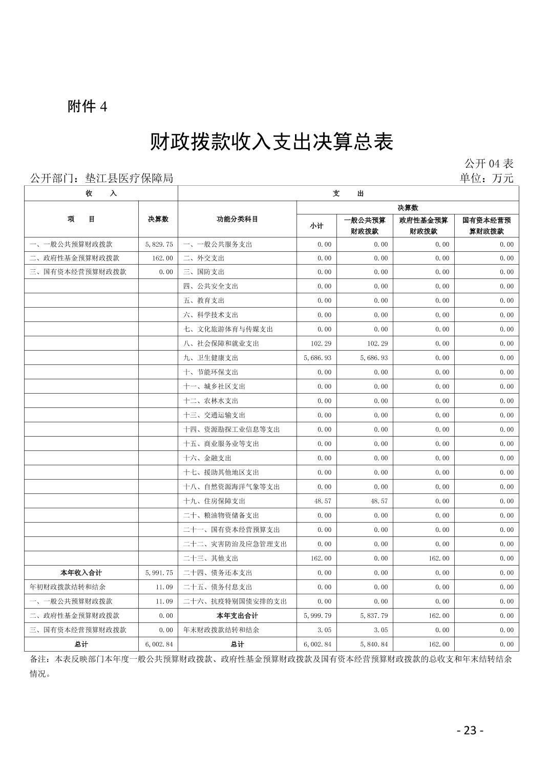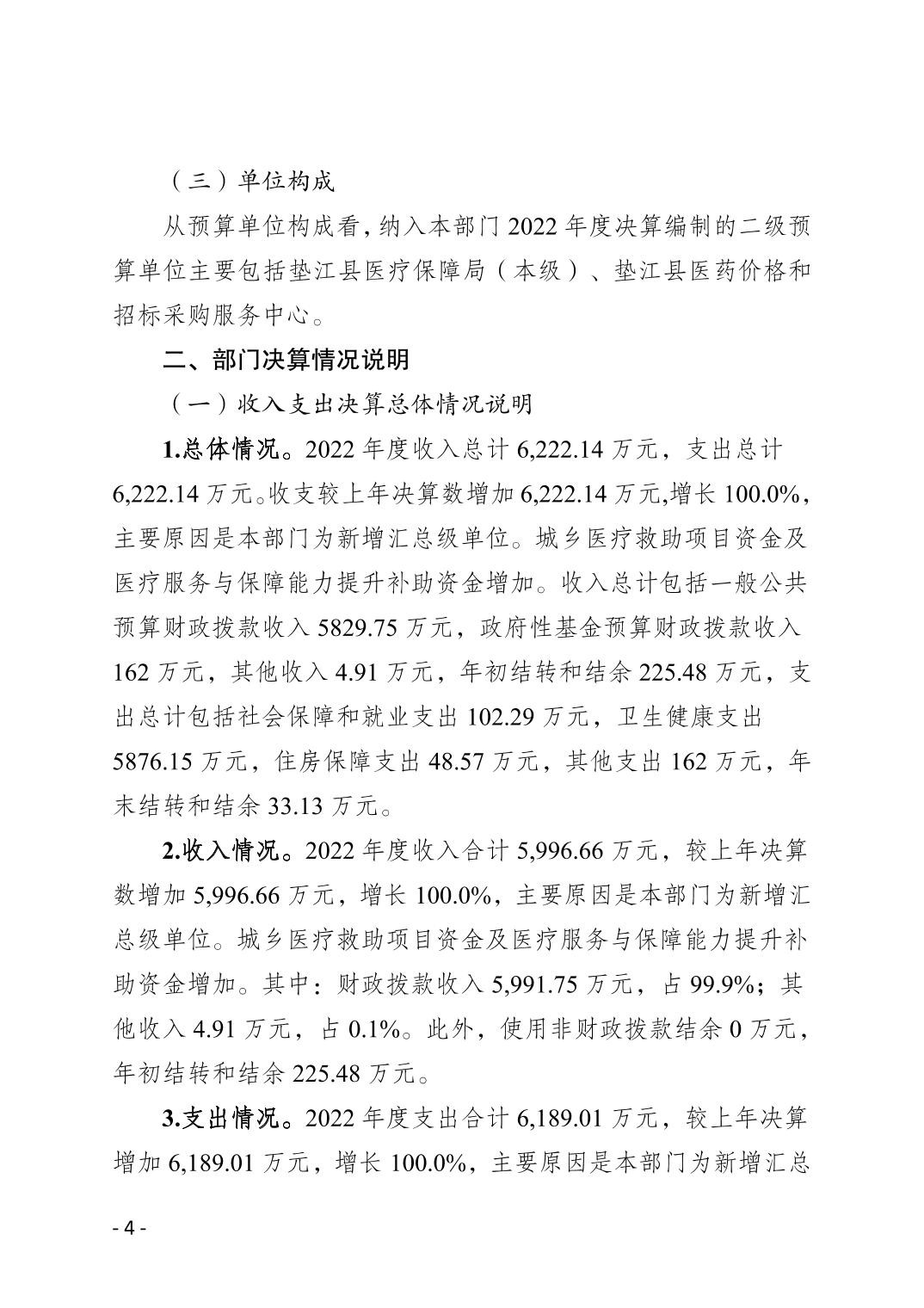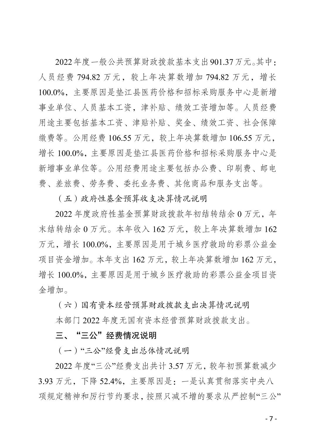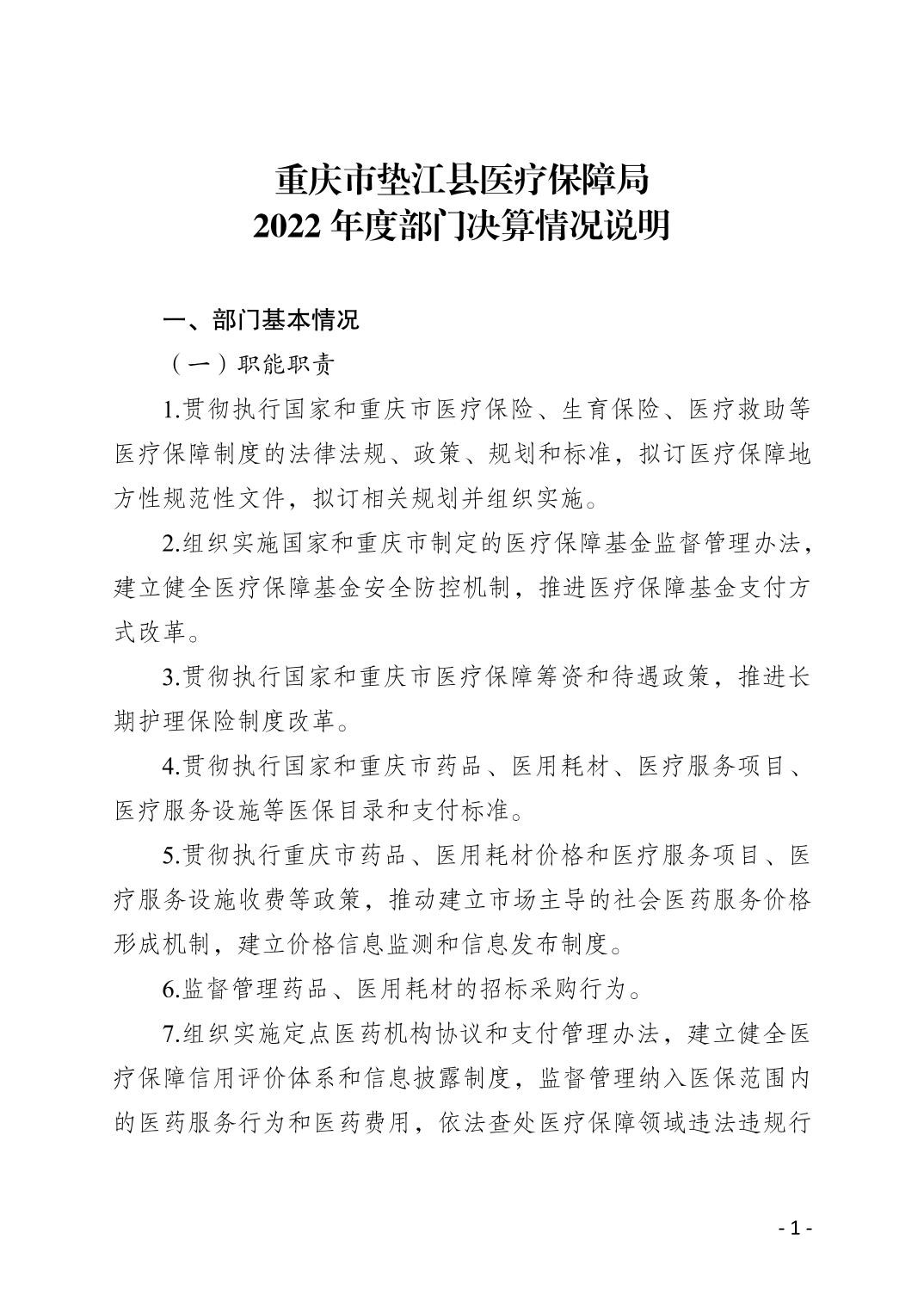 重庆市垫江县医疗保障局2022年度部门决算情况说明