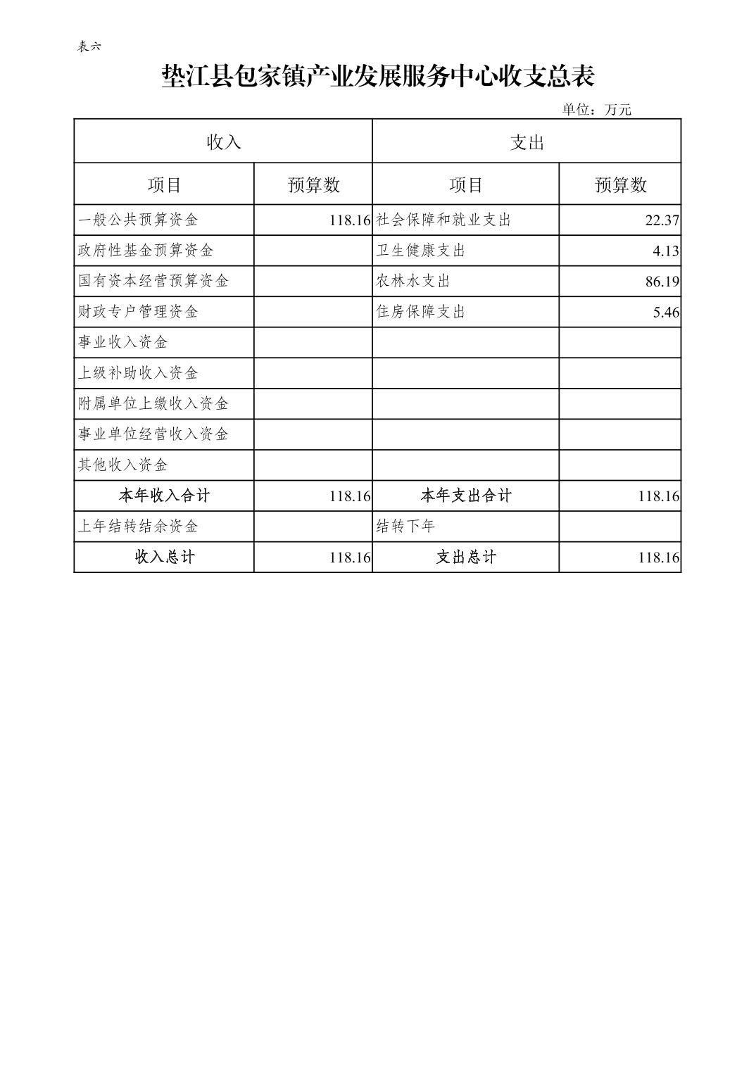 6.垫江县包家镇产业发展服务中心部门收支总表