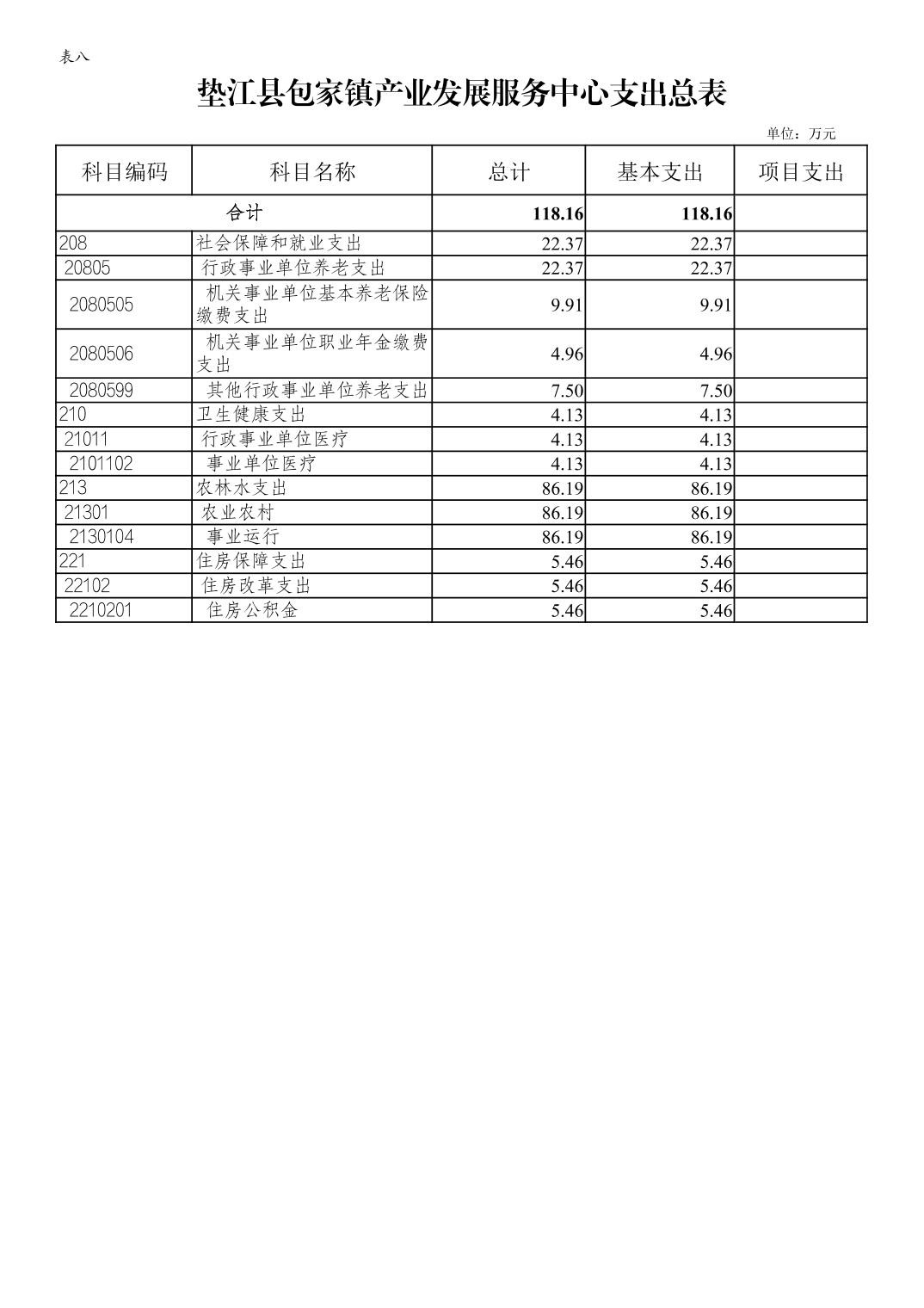 8.垫江县包家镇产业发展服务中心部门支出总表