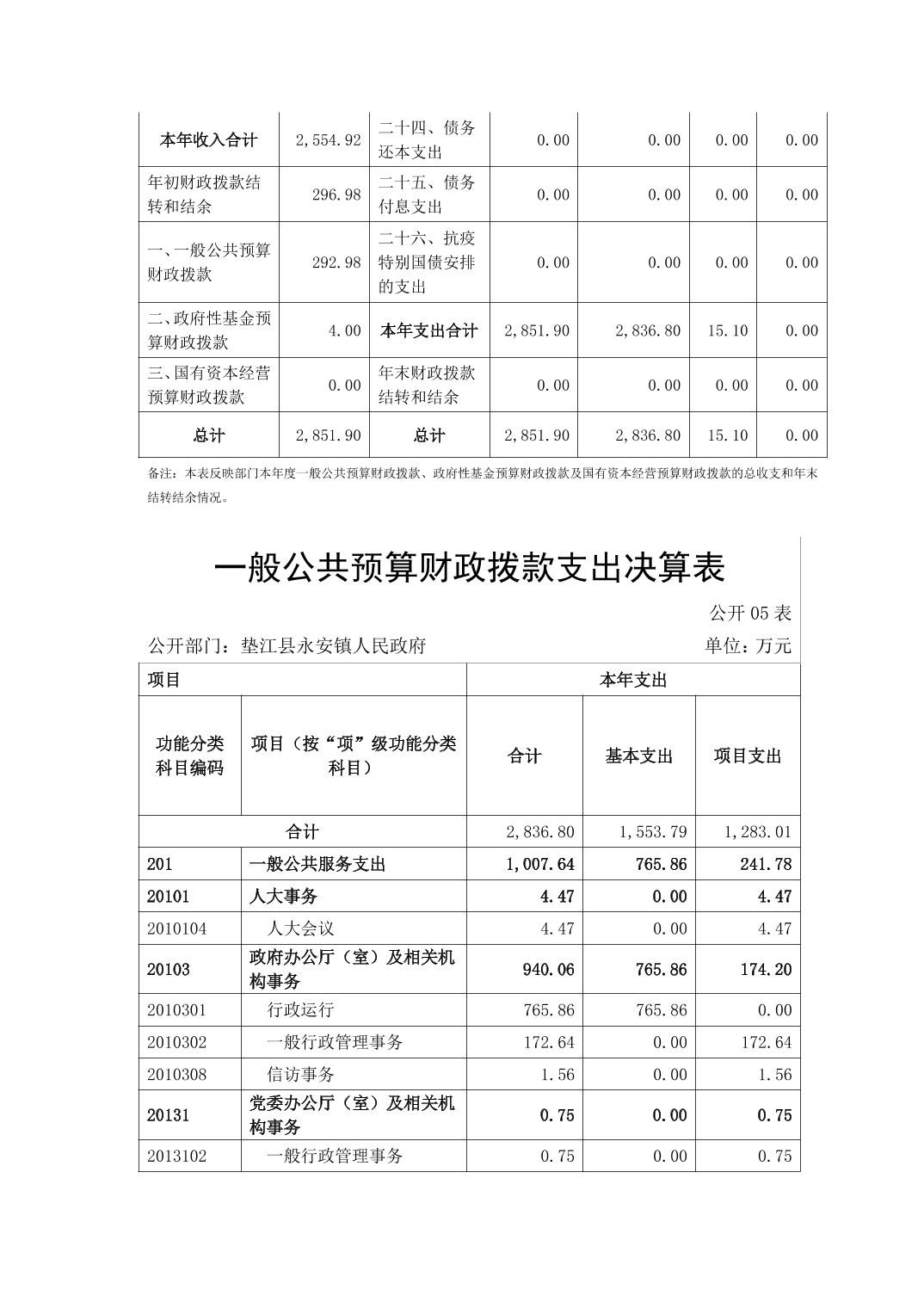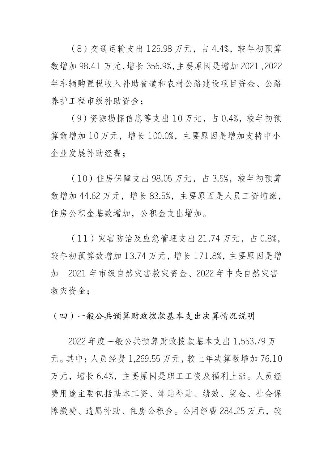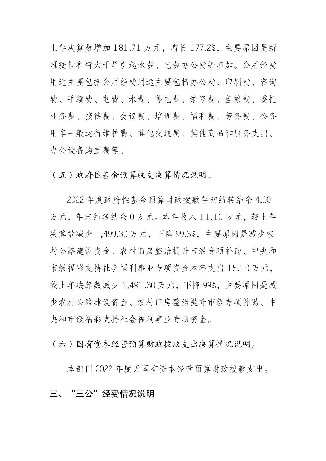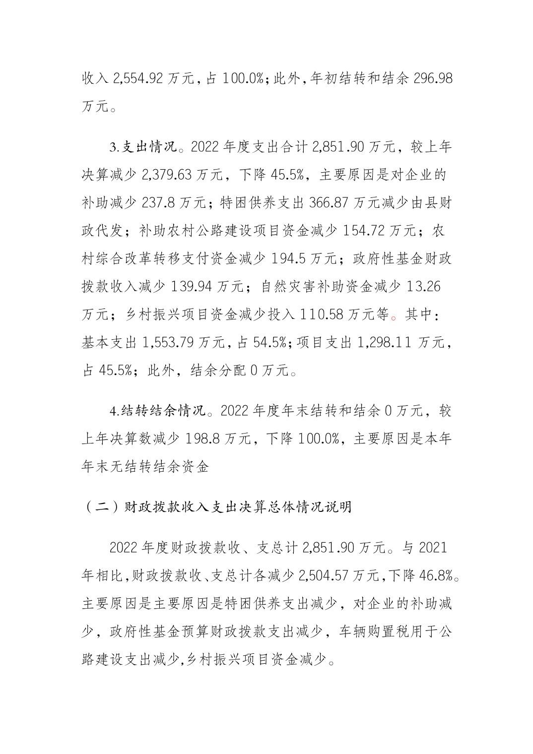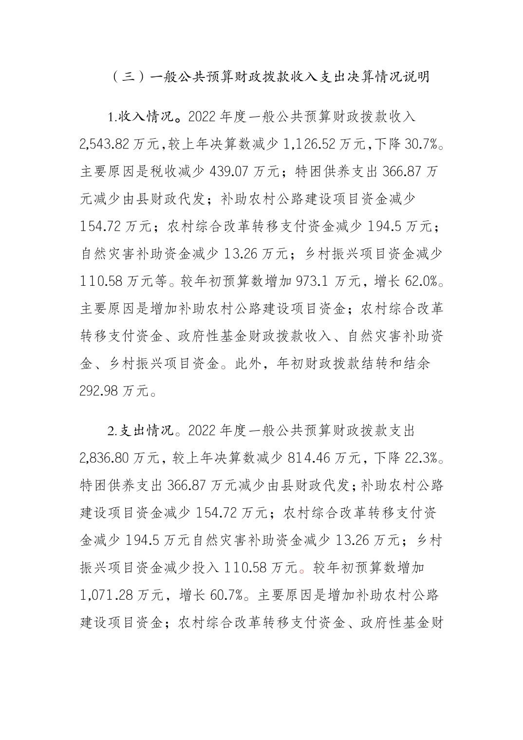 垫江县永安镇人民政府 2022 年度部门决算情况说明