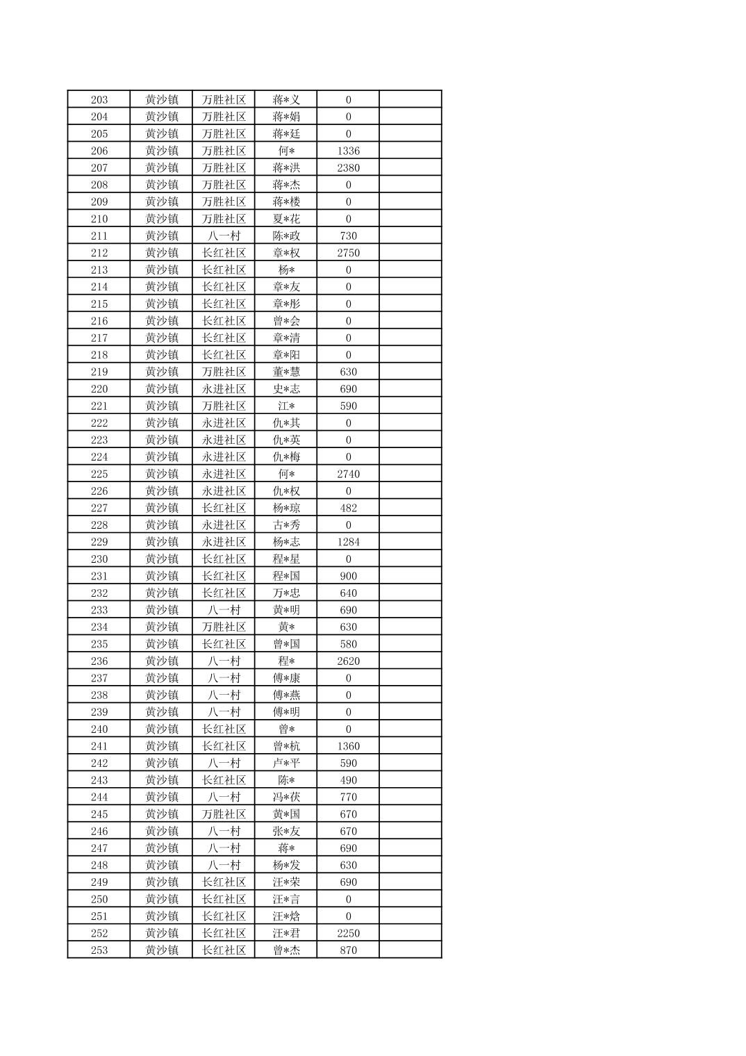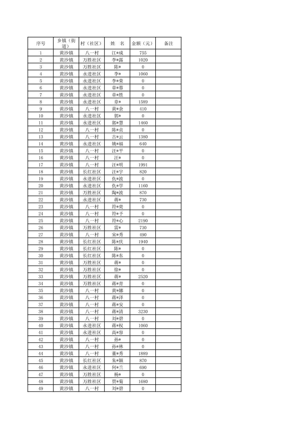 垫江县黄沙镇2025年10月城市、农村低保公示表