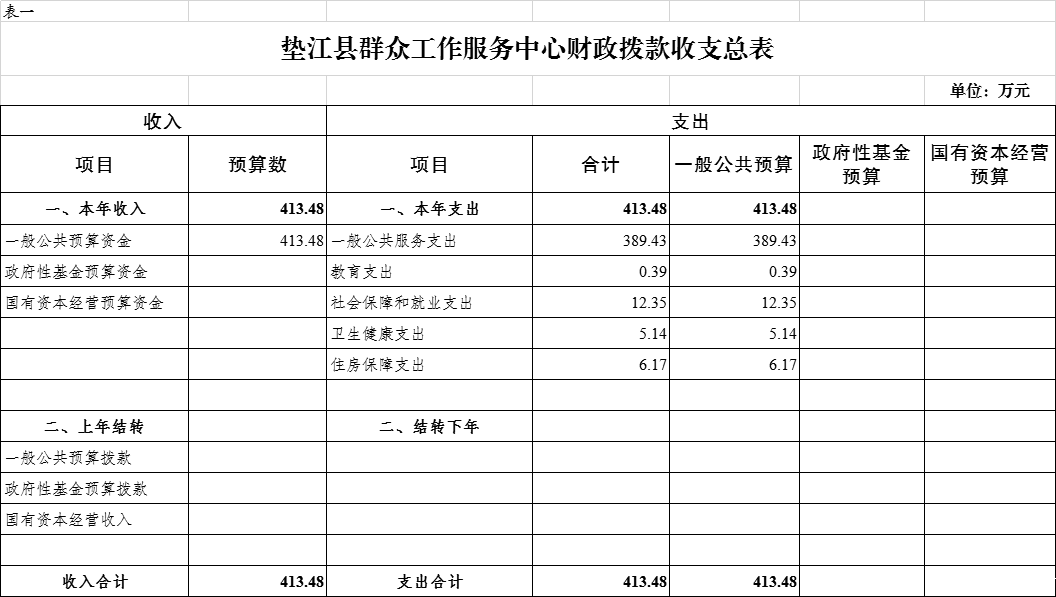 附表:1.垫江县群众工作服务中心财政拨款收支总表